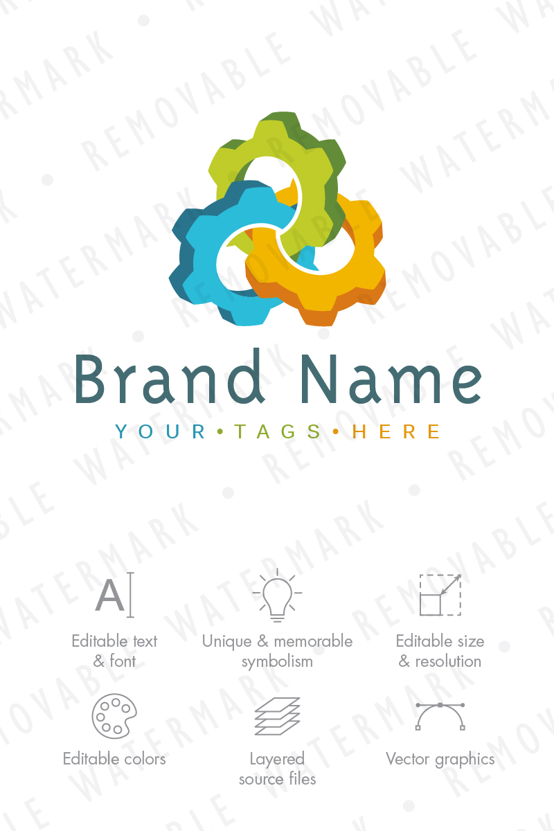 Download Шаблон логотипа "Interlaced Cogwheels Logo Template" / Interlaced Cogwheels Logo Template - Шаблон логотипа на тему графика technology software solution link collaboration gear cooperation share bond manufacture interlaced optimization cogwheel synergy engineering logo design template industry chain
