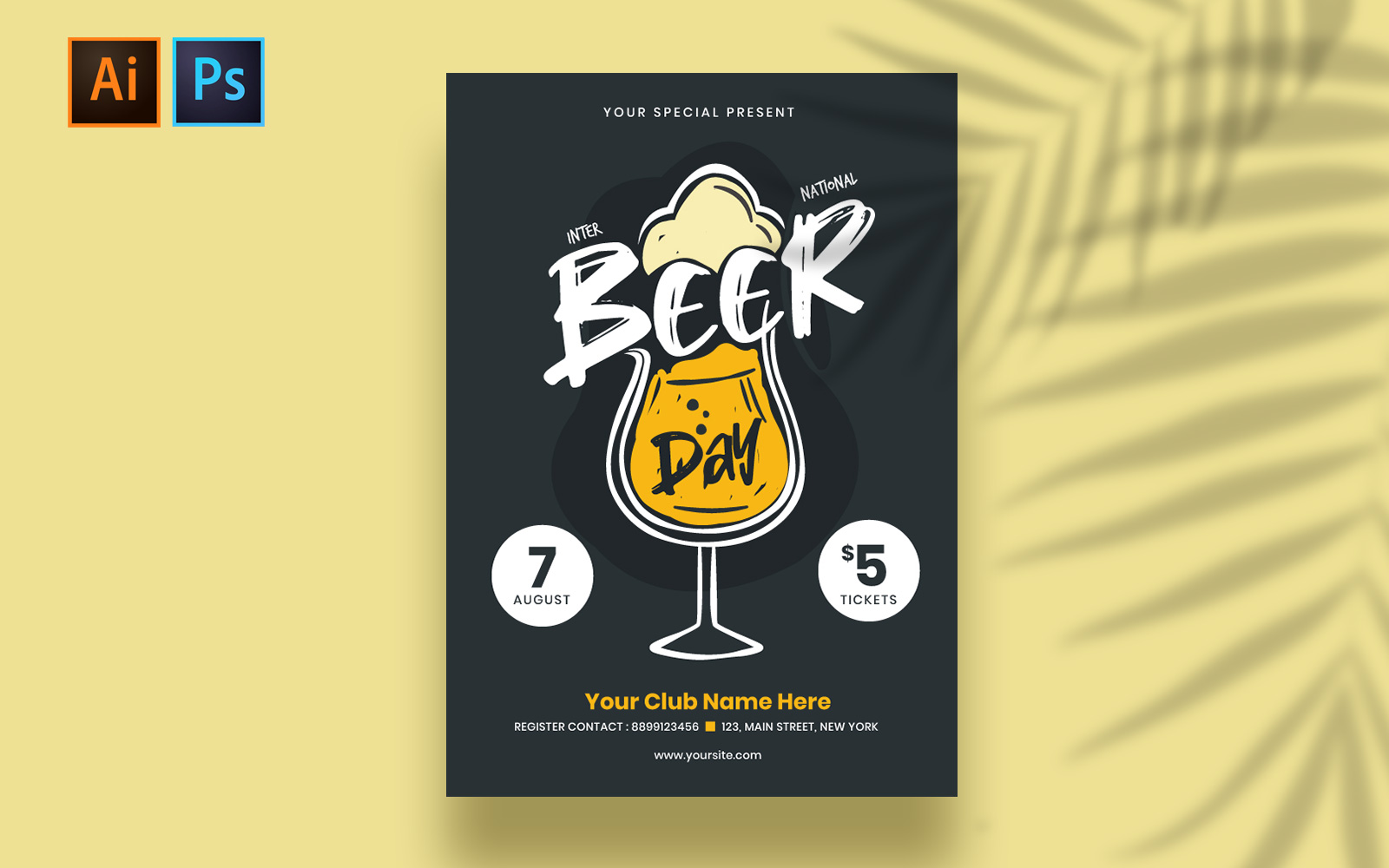 Download Фирменный стиль "International Beer Day - Corporate Identity Template" / International Beer Day - Corporate Identity Template - Фирменный стиль на тему графика international,beer,day,flyer,template,promotion,promotions,poster,templates,creative,modern,california,august,festival,brewing