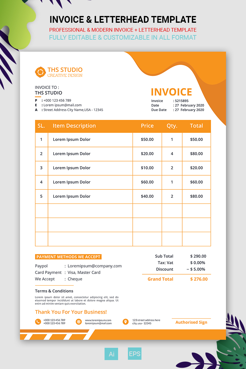 Download Фирменный стиль "Invoice & Letterhead - Corporate Identity Template" / Invoice & Letterhead - Corporate Identity Template - Фирменный стиль на тему графика billing,brand,branding,business,clean,company,corporate,dark,elegant,element,identity,invoice,letter,letterhead,minimal,minimalist,modern,stationery,studio,template