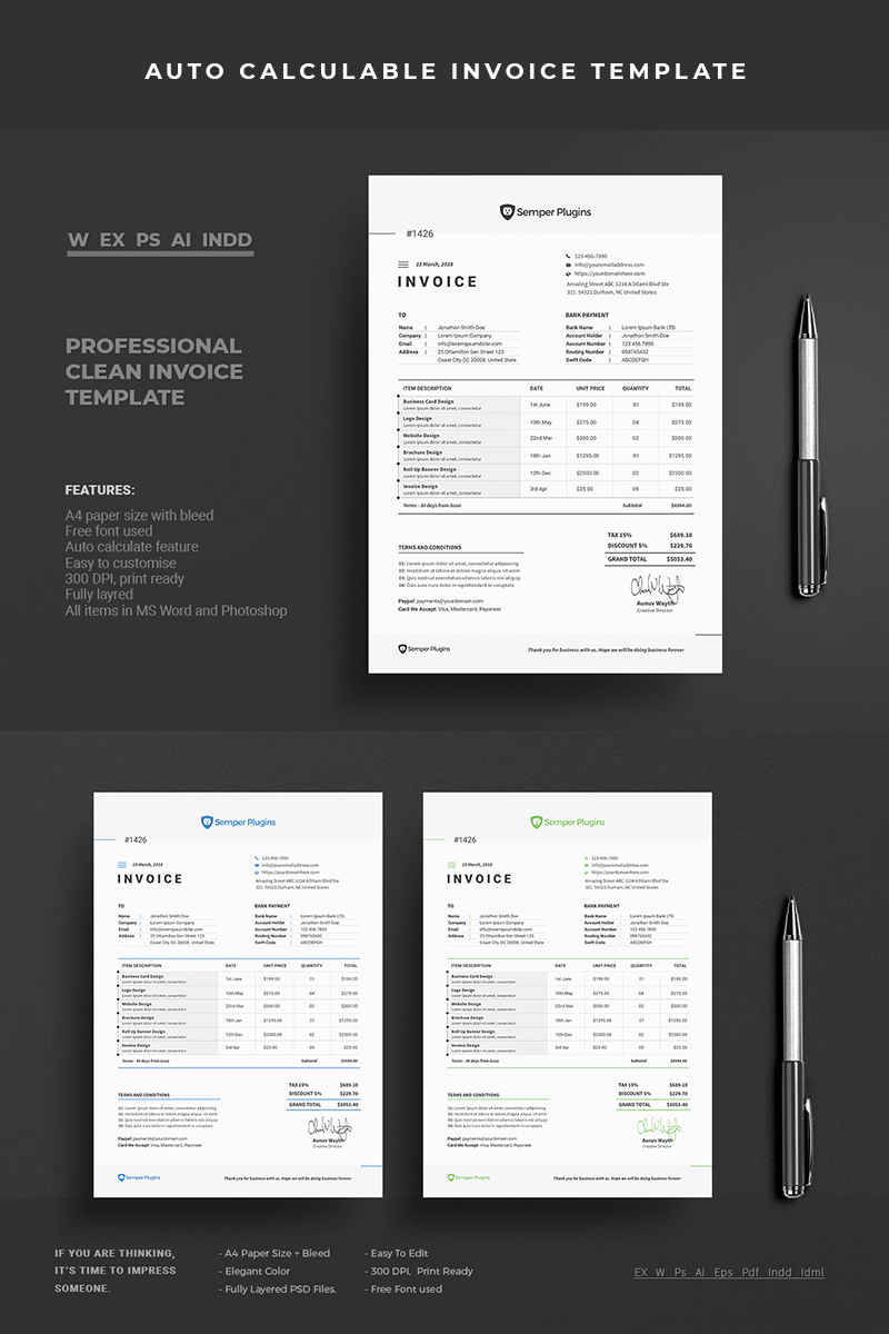 Download Фирменный стиль "Invoice | Bill | Cash Memo - Corporate Identity Template" / Invoice | Bill | Cash Memo - Corporate Identity Template - Фирменный стиль на тему графика a4 automatic bill business clean invoice corporate creative design elegant excel indesign template word minimalist modern professional psd simple