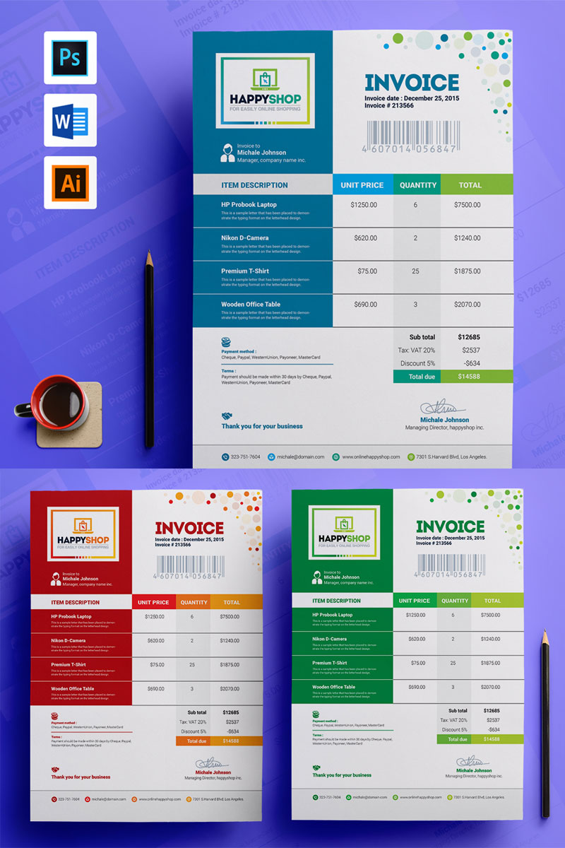 Download Фирменный стиль "Invoice Word - Corporate Identity Template" / Invoice Word - Corporate Identity Template - Фирменный стиль на тему графика invoice template design ms word psd eps clean bundle simple modern business cash memo a4 automatic bill creative excel indesign