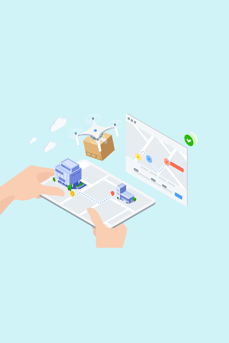 Download Иллюстрация "IOT Drone Delivery Isometric 1 - TU - Illustration" / IOT Drone Delivery Isometric 1 - TU - Illustration - Иллюстрация на тему графика isometric illustration blockchain platform finance report chart analysis growth device laptop bussiness strategy people design.