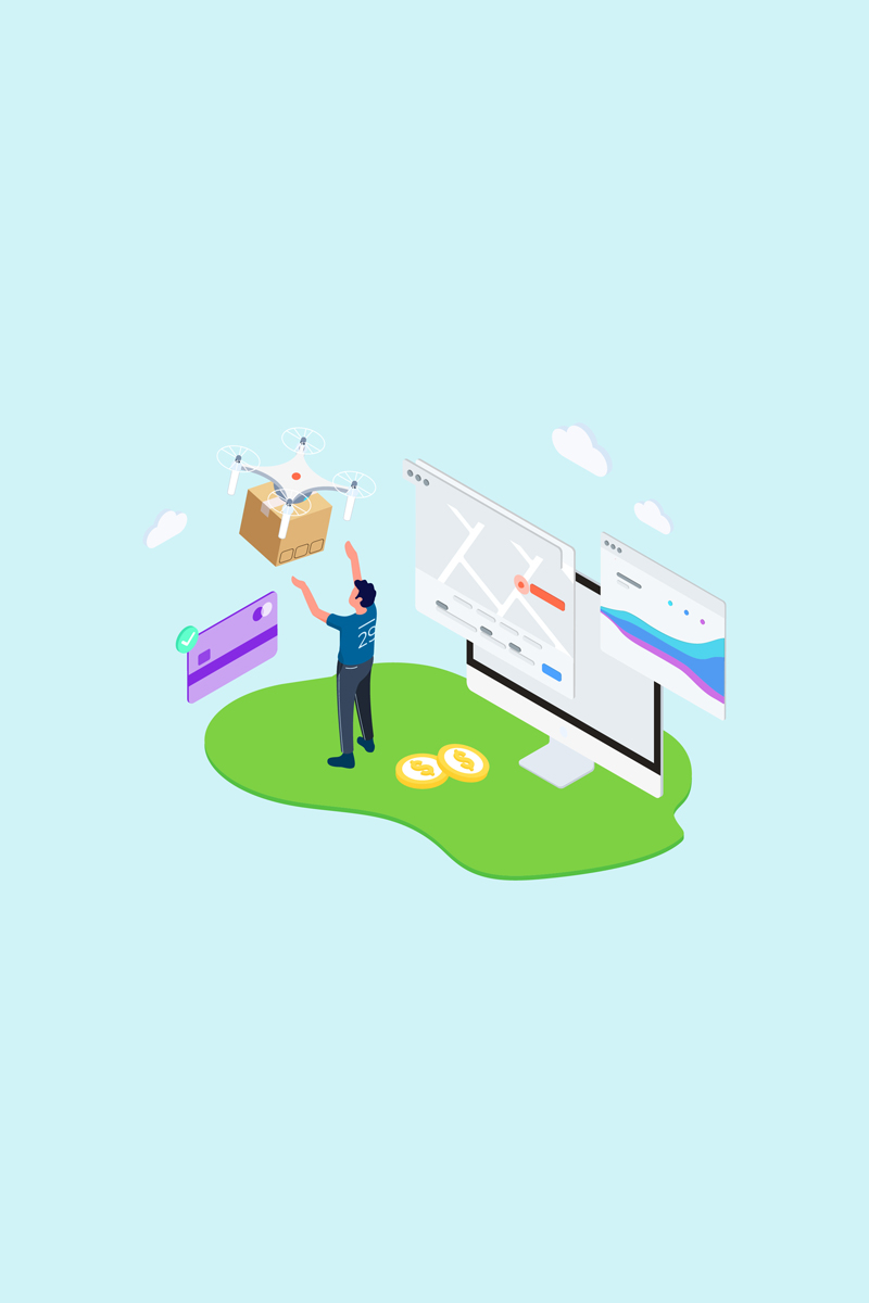 Download Иллюстрация "IOT Drone Delivery Isometric 2 - TU - Illustration" / IOT Drone Delivery Isometric 2 - TU - Illustration - Иллюстрация на тему графика isometric illustration blockchain platform finance report chart analysis growth device laptop bussiness strategy people design.