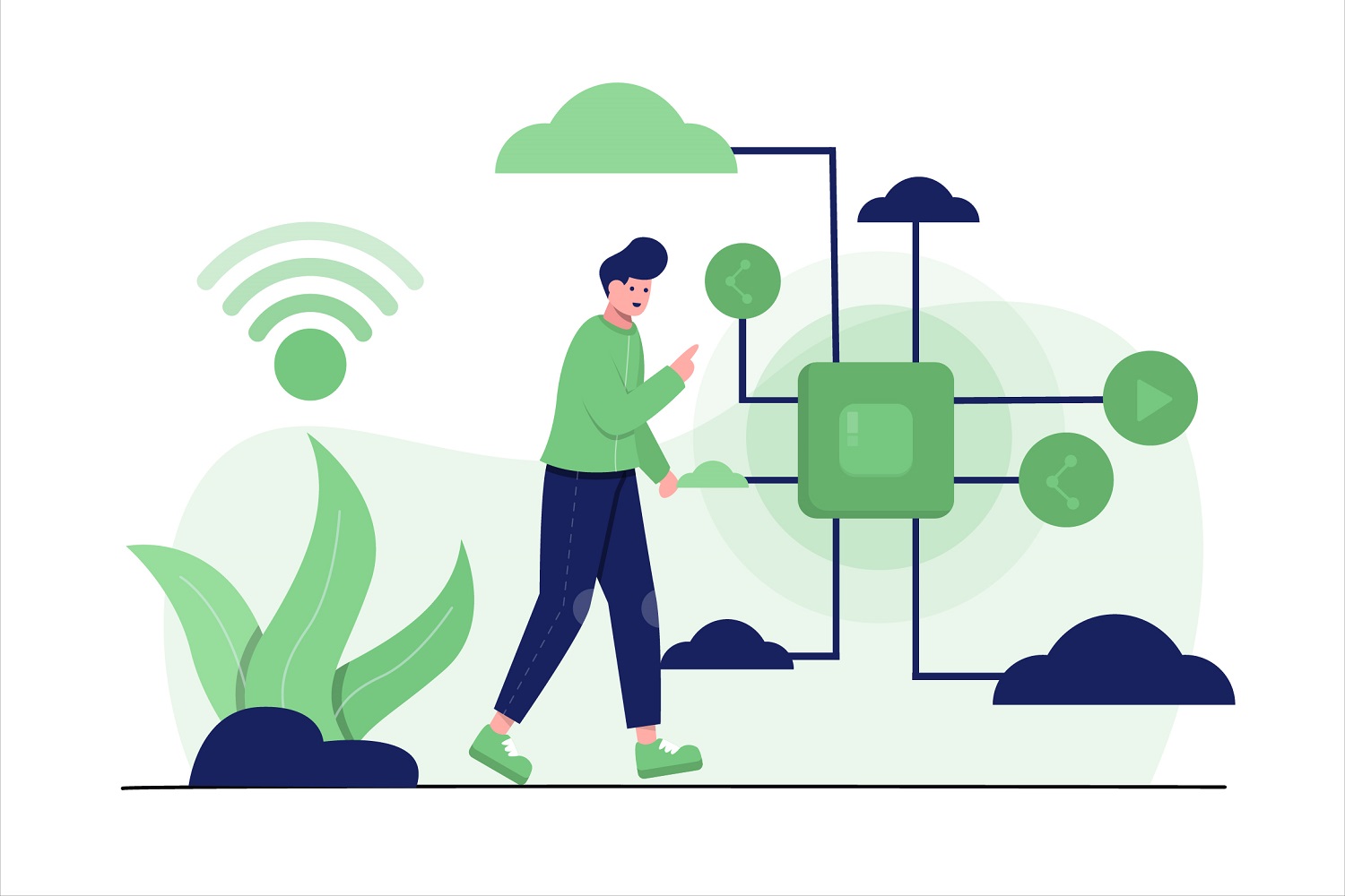 Download Vector "IoT Internet of Things Concept Flat Illustration - Vector Image" / IoT Internet of Things Concept Flat Illustration - Vector Image - Vector на тему графика illustration,vector,flat,iot,internet,things,network,technology,connection,concept,wireless,smart,mobile,wifi