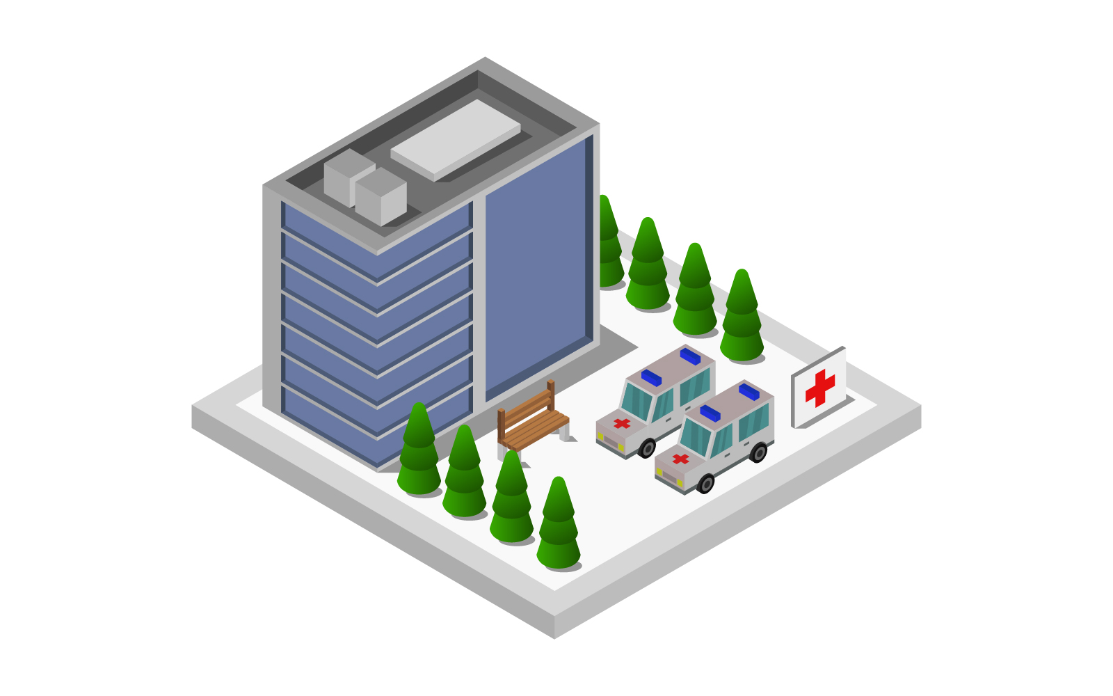 Download Vector "Isometric hospital on background - Vector Image" / Isometric hospital on background - Vector Image - Vector на тему графика clinic,illustration,paramedic,service,health,rescue,map,hospital,vector,design,street,urgency,vehicle,icon,exterior,city,ambulance,isometric,town,3d