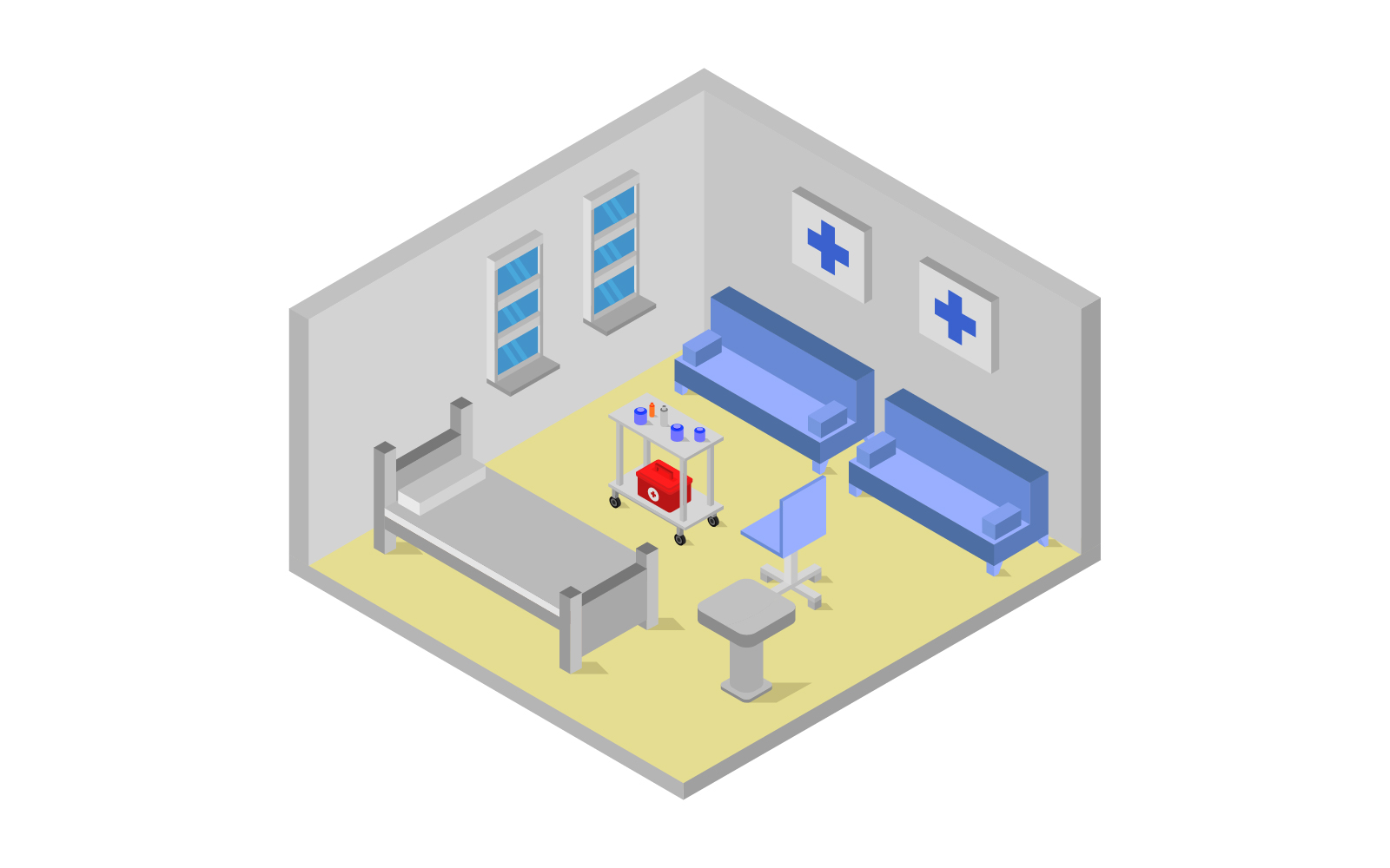 Download Vector "Isometric hospital room - Vector Image" / Isometric hospital room - Vector Image - Vector на тему графика clinic,illustration,room,medicine,equipment,isometric,hospital,vector,medical,surgery,set,care,aid,paramedic,service,health,design,building,emergency,isolated