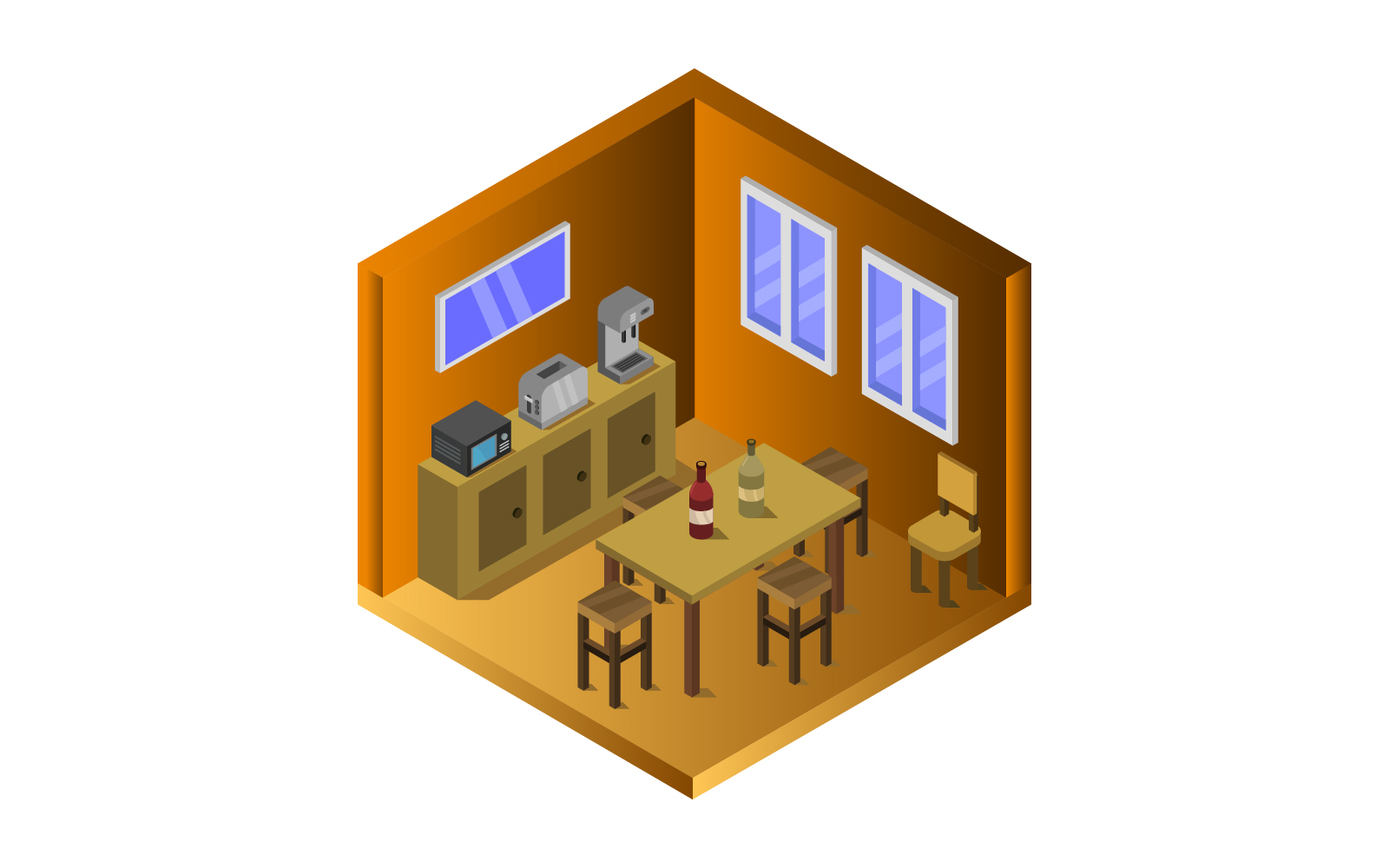 Download Vector "Isometric Kitchen Room - Vector Image" / Isometric Kitchen Room - Vector Image - Vector на тему графика room,vector,isometric,fridge,meal,food,chef,restaurant,cooking,equipment,professional,illustration,cutaway,cross-section,oven,set,architecture,table,kitchen,stove