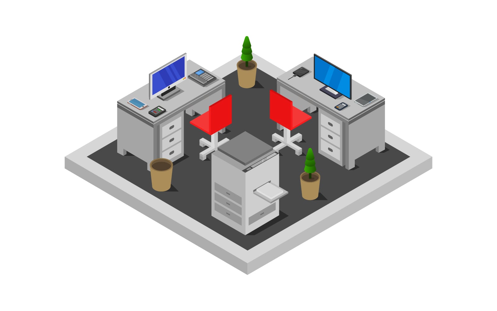 Download Vector "Isometric office room on background - Vector Image" / Isometric office room on background - Vector Image - Vector на тему графика workplace,illustration,corporate,room,monitor,isometric,work,business,table,vector,modern,3d,interior,building,house,inside,office,infographic,cartoon,indoor