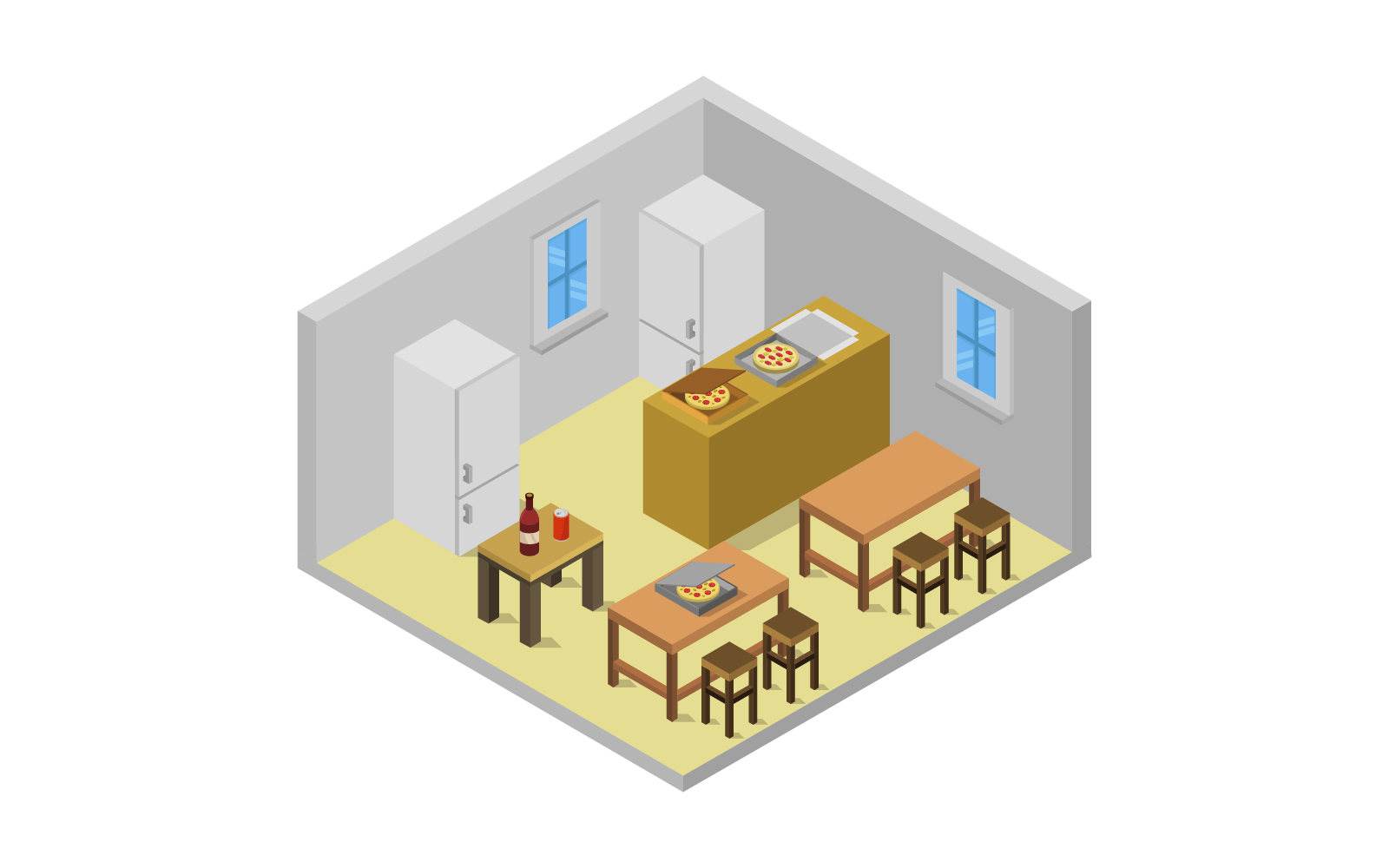 Download Vector "Isometric Pizza Room - Vector Image" / Isometric Pizza Room - Vector Image - Vector на тему графика home,pizza,wall,illustration,room,living,vector,interior,isolated,indoor,isometric,decoration,furniture,3d,cook,kitchen,culinary,board,meat,coffee