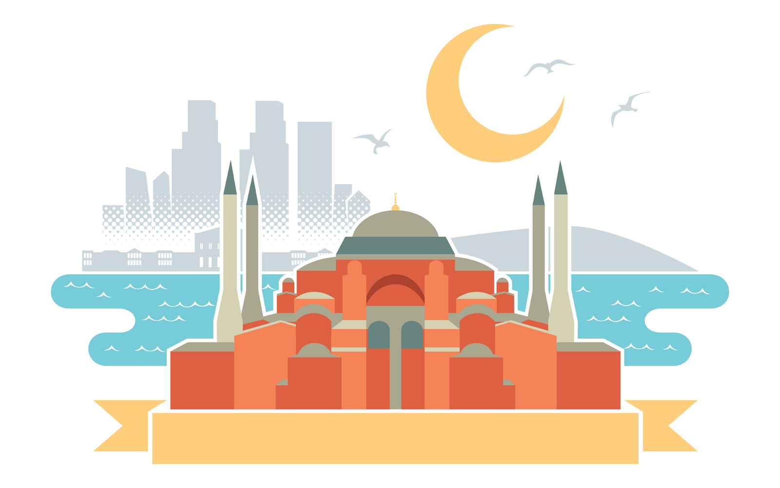 Download Иллюстрация "Istanbul - Illustration" / Istanbul - Illustration - Иллюстрация на тему графика istanbul,hagia sophia,mosque,museum,city,cityscape,skyscraper,landscape,bosphorus,golden horn,dolmabahce,palace,skyline,turkey,traditional,symbol