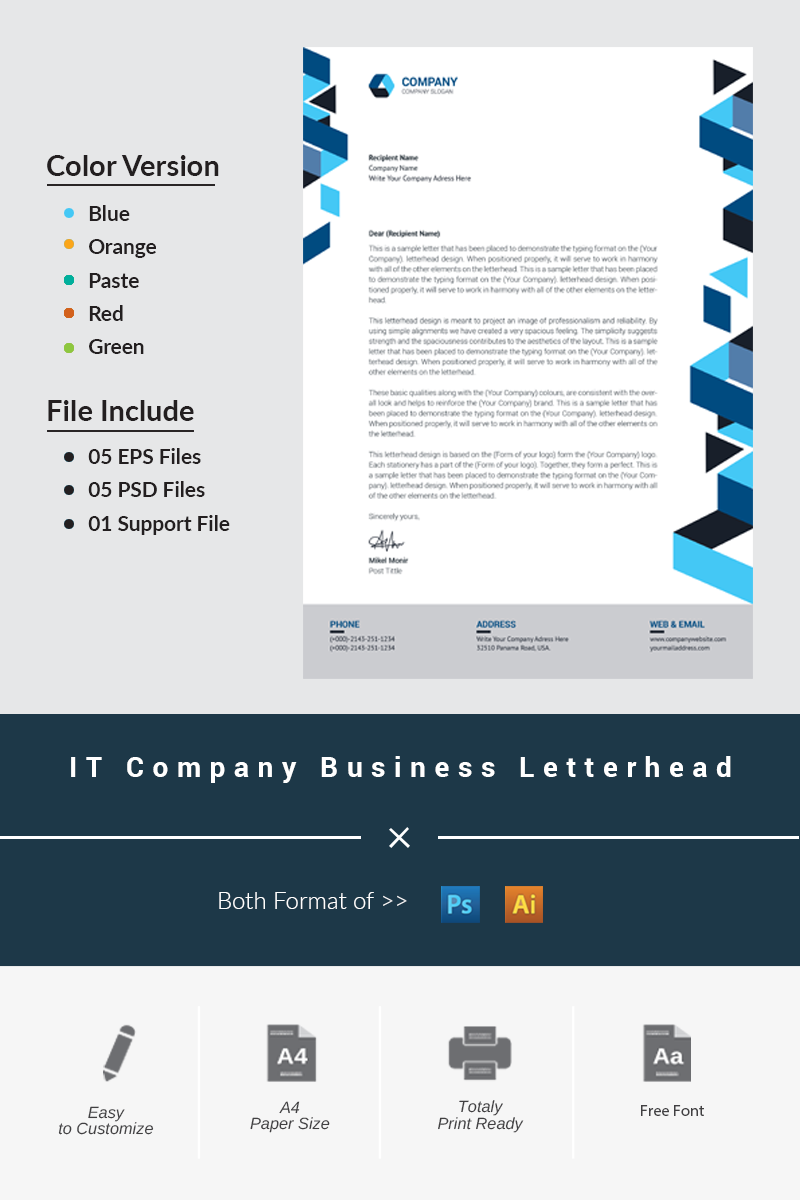 Download Фирменный стиль "IT Company Business Letterhead - Corporate Identity Template" / IT Company Business Letterhead - Corporate Identity Template - Фирменный стиль на тему графика black blue both side design business card letterhead creative flyer graphic green landscape letterhead design logo magazine modern official print