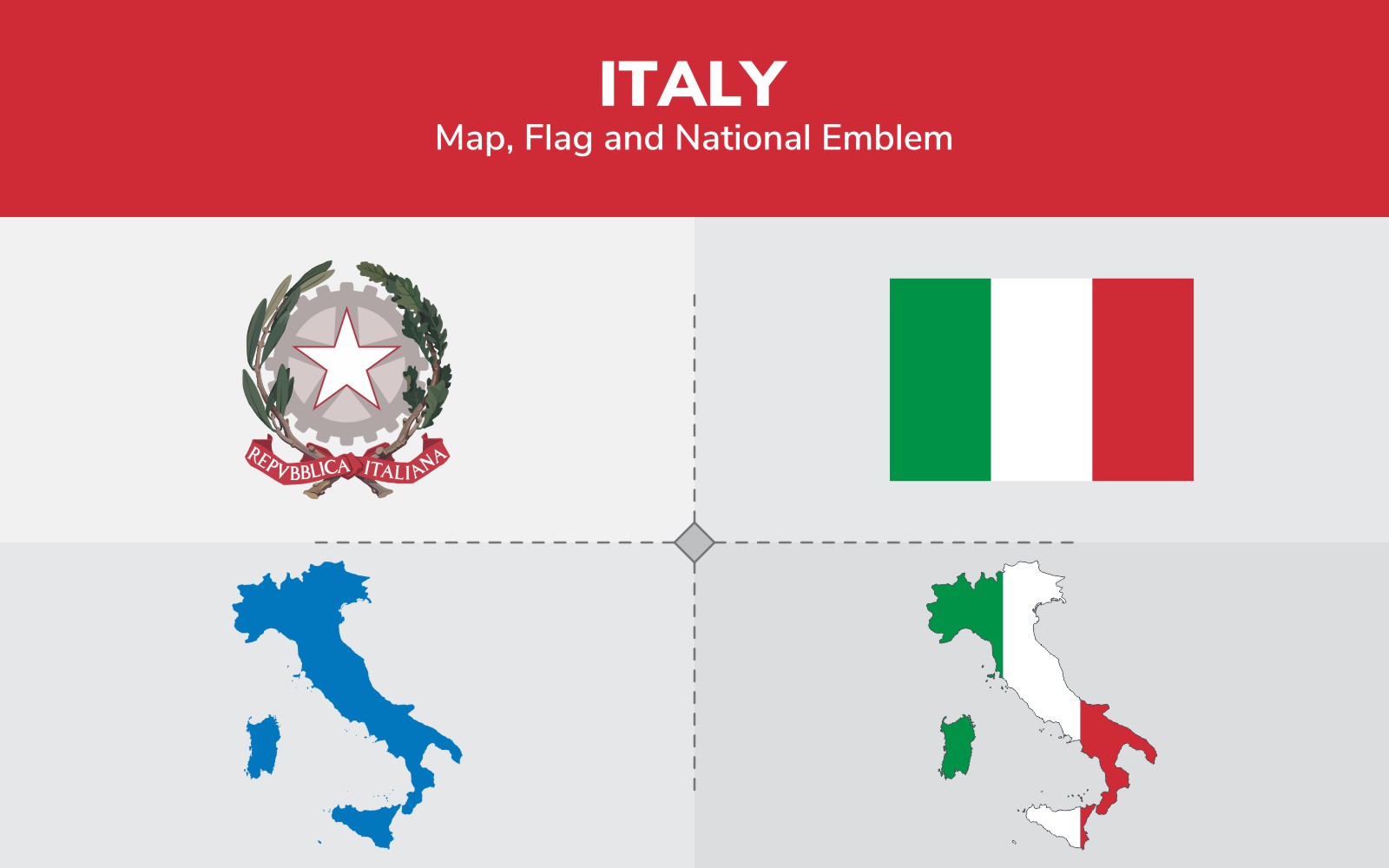 Download Иллюстрация "Italy Map, Flag and National Emblem - Illustration" / Italy Map, Flag and National Emblem - Illustration - Иллюстрация на тему графика continents,countries,map,political map,traveling,vector,emblem,national,flag,coat,arms,country,symbol,nations,state,sign,nation,badge,symbolic object,europe