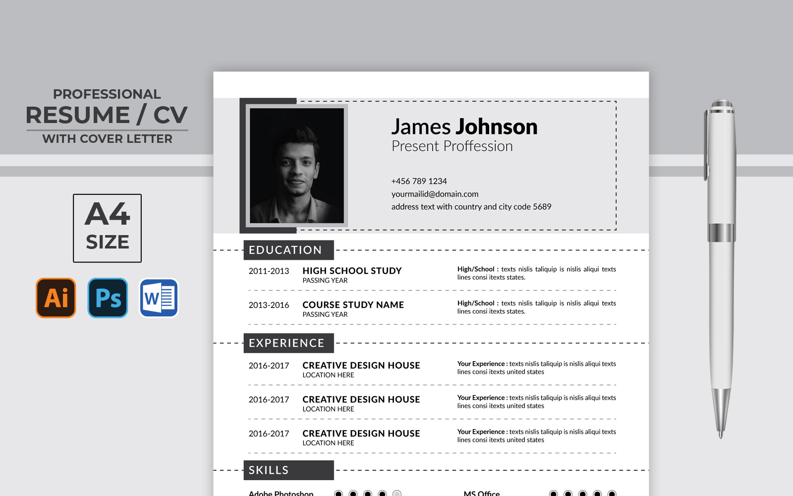 Download Резюме "James Johnson Clean CV Resume Template" / James Johnson Clean CV Resume Template - Резюме на тему графика a4,best resume,clean,clean resume,cover letter,creative cv,curriculum vitae,cv,cv design,job,modern cv,modern resume,resume design,resume simple,resume template,james johnson,resume,professio
