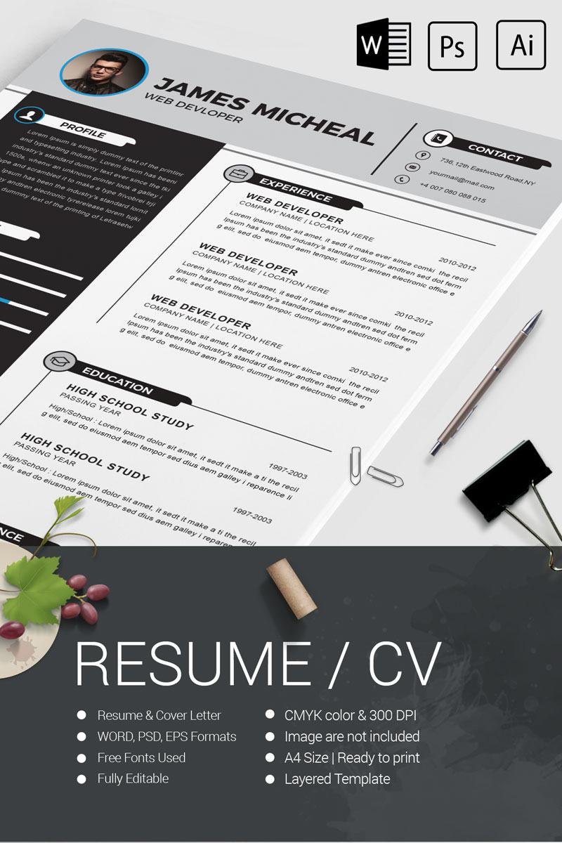 Download Резюме "James Micheal Resume Template" / James Micheal Resume Template - Резюме на тему графика 2 page a4 clean cv design elegant resume female feminine infographic letter minimalist modern portfolio professional indesign minimal pages