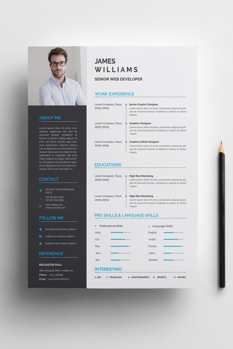Download Резюме "James Williams - Resume Template" / James Williams - Resume Template - Резюме на тему графика resume template design cover letter cv modern minimal professional curriculum vitae us diy designer creative word ms microsoft bundle
