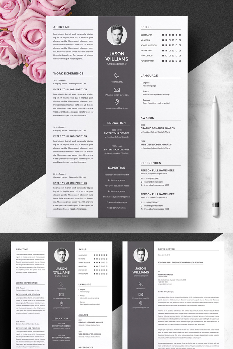 Download Резюме "Jason Resume Template" / Jason Resume Template - Резюме на тему графика 1 page resume 2 3 clean cover letter curriculum vitae cv template illustrator eps mac pages microsoft word minimal resume