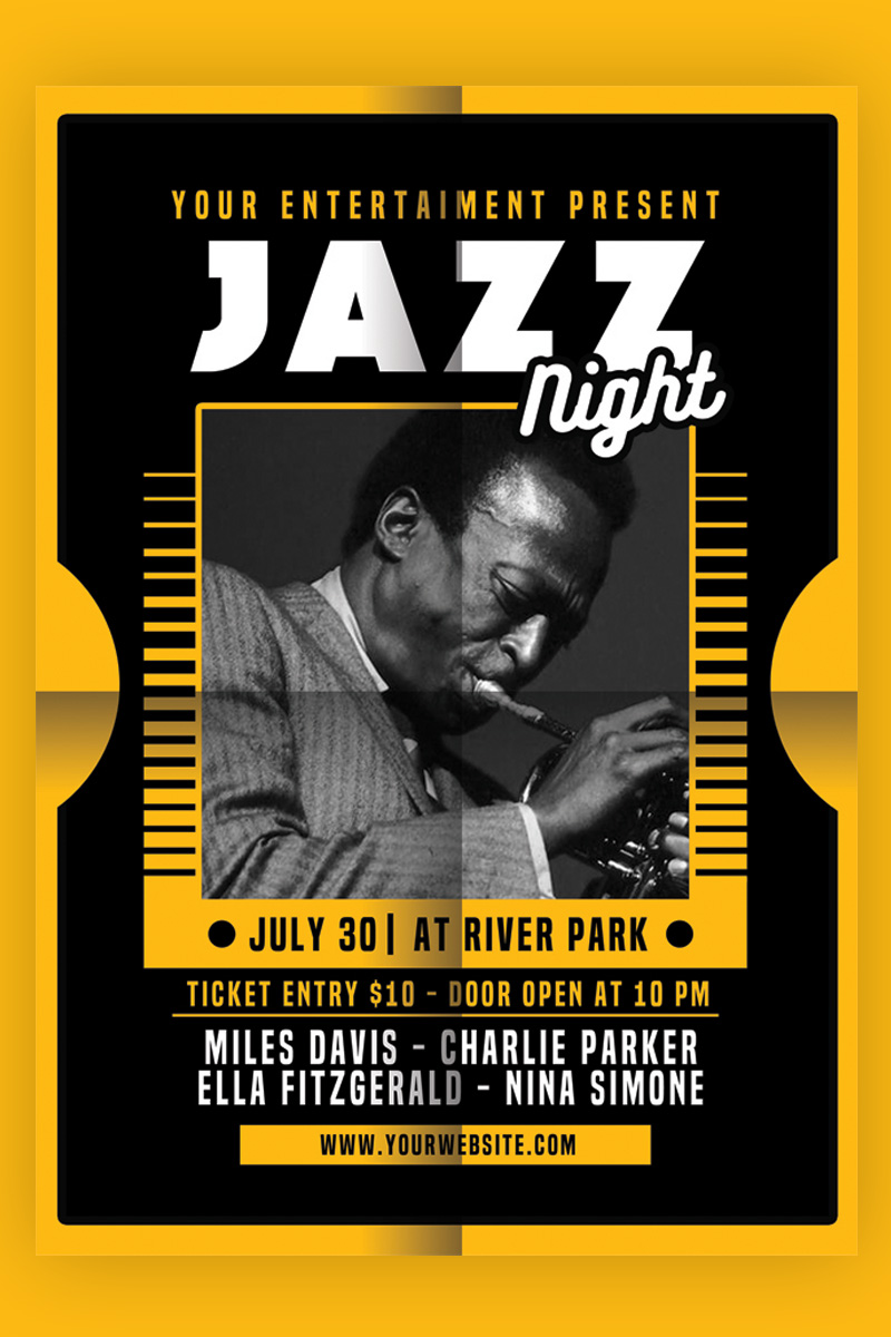 Download Фирменный стиль "Jazz Night Flyer Poster - Corporate Identity Template" / Jazz Night Flyer Poster - Corporate Identity Template - Фирменный стиль на тему графика black blue blues board classic club concert drink elegant festival flyer friends girl glamour guitar jazz light model music night