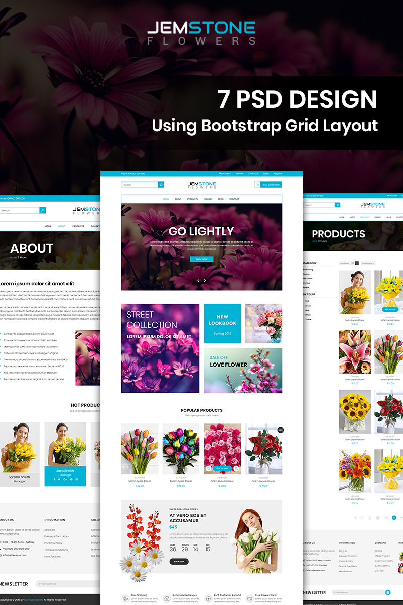 Download PSD шаблон "Jemstone Flowers - Flowers Store PSD Template" / Jemstone Flowers - Flowers Store PSD Template - PSD шаблон на тему графика flowers store theme template psd photoshop