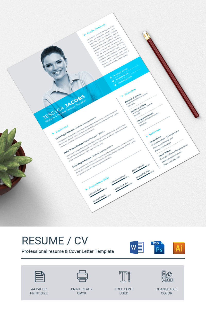 Download Резюме "Jessyca Resume Template" / Jessyca Resume Template - Адаптивный Резюме на тему графика a4 clean resume cv doc elegant template indesign infographic modern professional creative design minimal pages portfolio word us letter