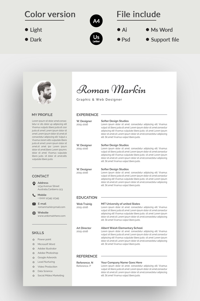 Download Резюме "Jhon Markin Modern Resume Template" / Jhon Markin Modern Resume Template - Резюме на тему дизайн и фотография resume cv clean creative word infographic modern professional student mac pages manager template bankers doctors job seekers
