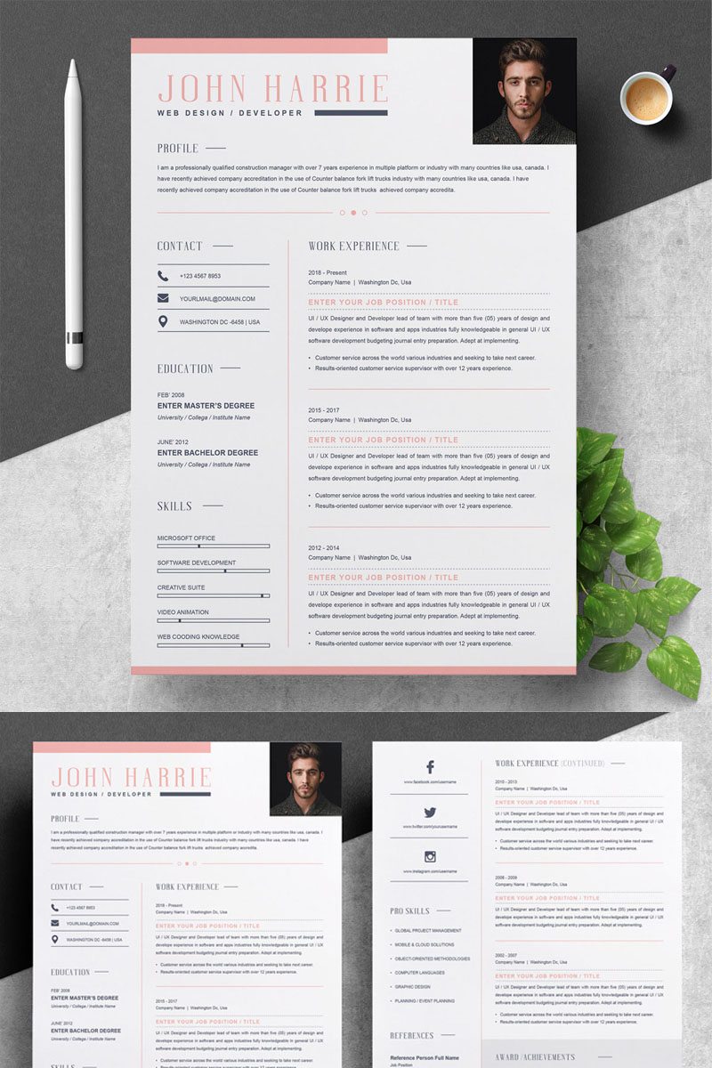 Download Резюме "John Harrie Resume Template" / John Harrie Resume Template - Резюме на тему графика professional resume cv template design word clean modern 2 page cover letter apple pages psd minimal microsoft mac photoshop illustrator