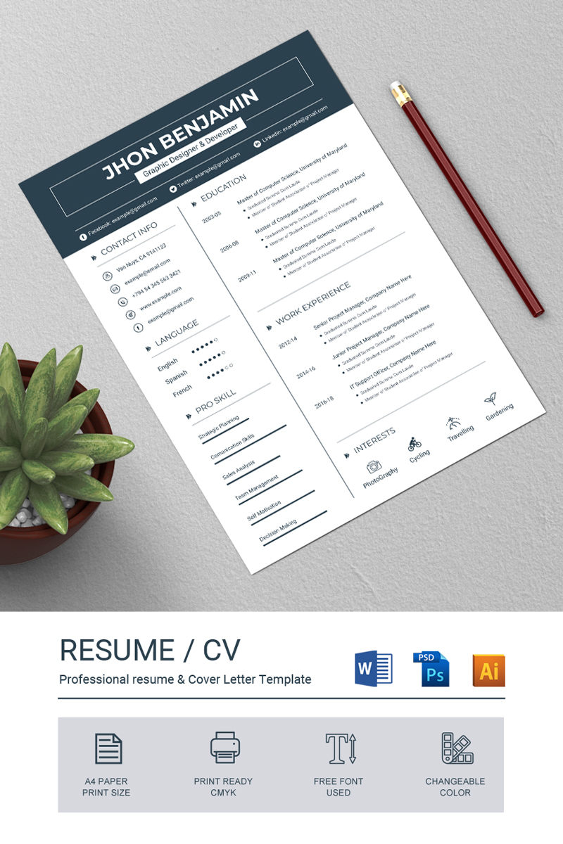 Download Резюме "John Resume Template" / John Resume Template - Резюме на тему графика a4 clean resume cv doc elegant template indesign infographic modern professional creative design minimal pages portfolio word us letter