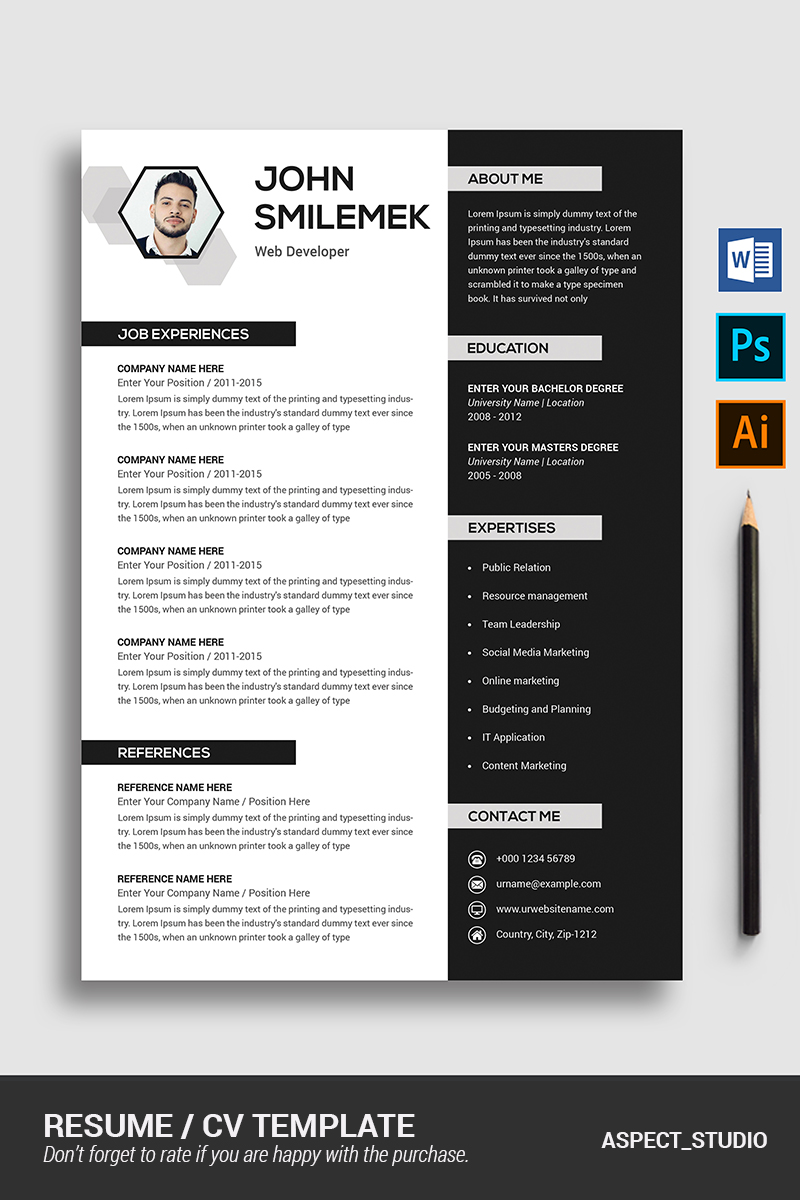 Download Резюме "John Smilemek Resume Template" / John Smilemek Resume Template - Резюме на тему графика 1,page,resume,2,3,clean,cover,letter,creative,cv,template,design,document,microsoft,word,minimalist,modern,photoshop,psd,professional