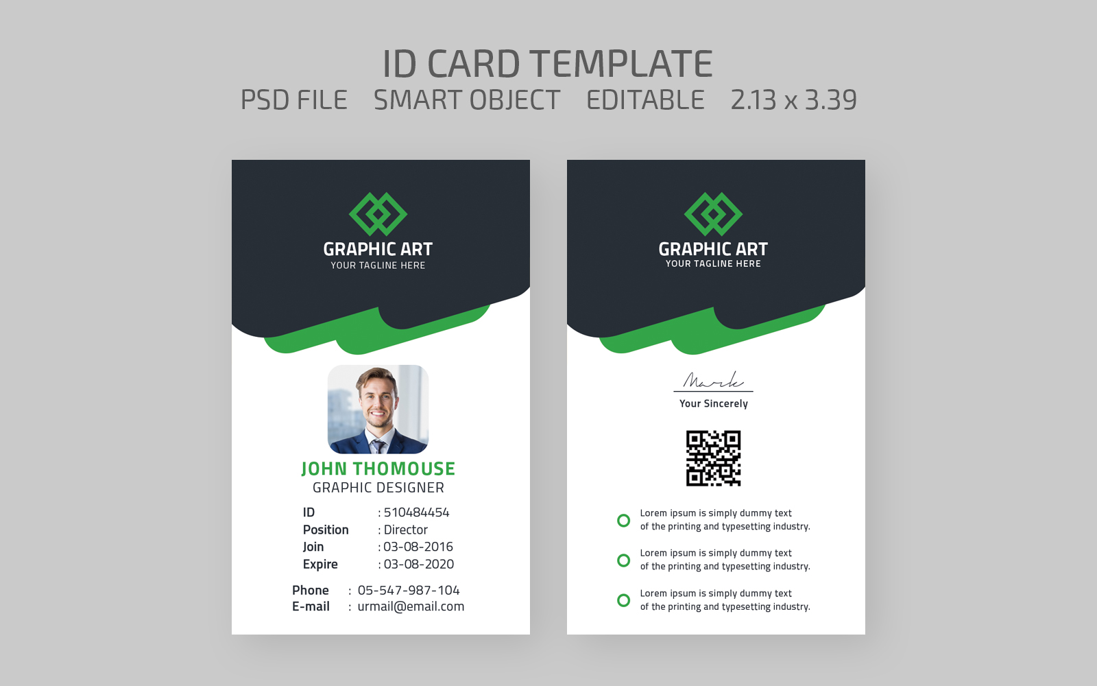 Download Фирменный стиль "John Thomouse Id Card - Corporate Identity Template" / John Thomouse Id Card - Corporate Identity Template - Фирменный стиль на тему графика id card,card,business card,business,qr code,qr,individual,personal,vertical,visit,corporate,modern,creative,name,call,id,template,clean,stylish,unique
