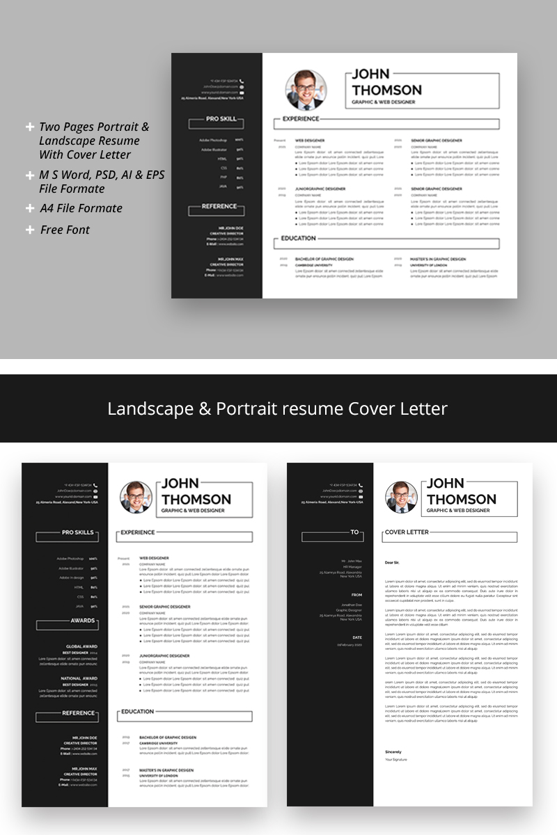 Download Резюме "John Thomson Resume Template" / John Thomson Resume Template - Резюме на тему графика a4 business clean cover letter curriculum vitae design editable illustrator indesign layered microsoft word modern photoshop portfolio print ready professional