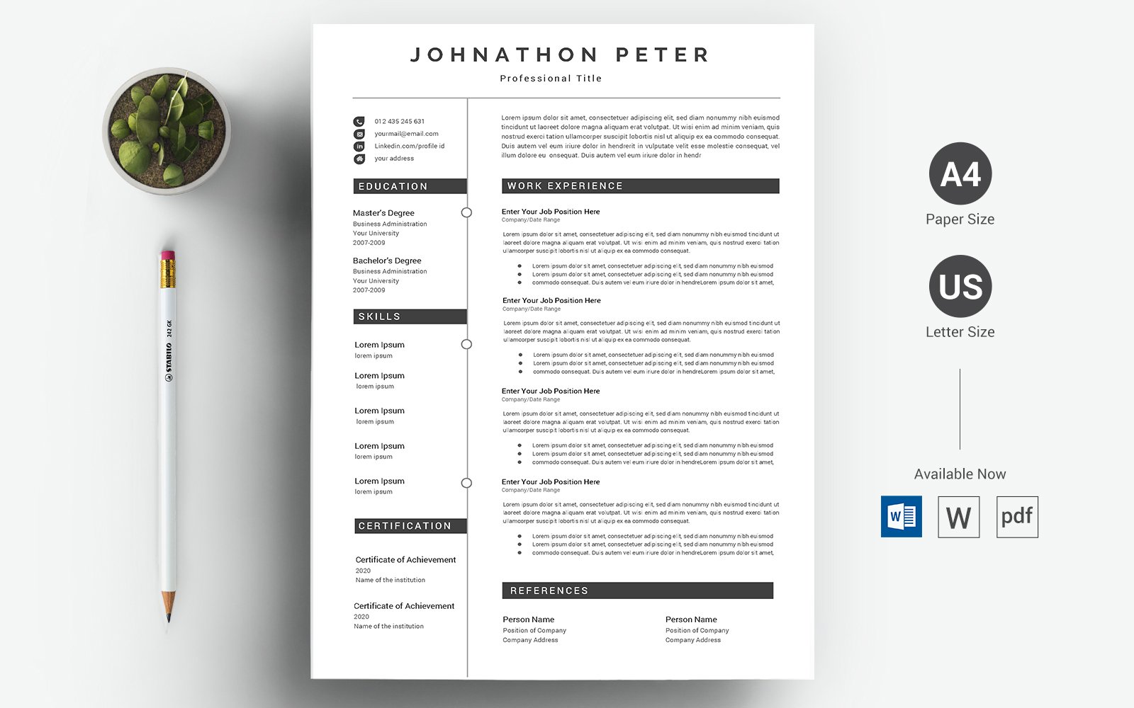Download Резюме "Johnathon Peter - CV & Resume Template" / Johnathon Peter - CV & Resume Template - Резюме на тему графика minimal,clean,black,resume,bright,cv,cover letter,creative,curriculum vitae,design,template,docx,editable,elegant,job,word,modern,a4,blue,corporate