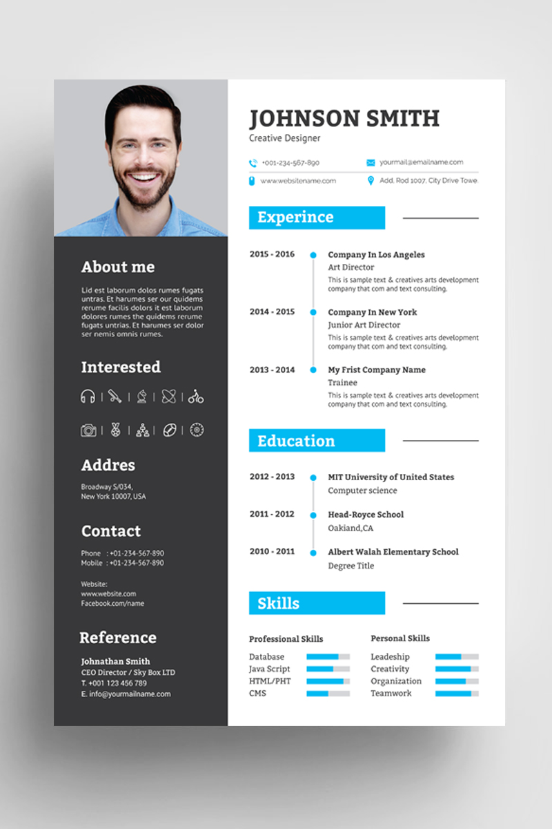 Download Резюме "Johnson Smith Resume Template" / Johnson Smith Resume Template - Резюме на тему графика resume cv clean creative word infographic modern professional student mac pages manager template bankers doctors job seekers