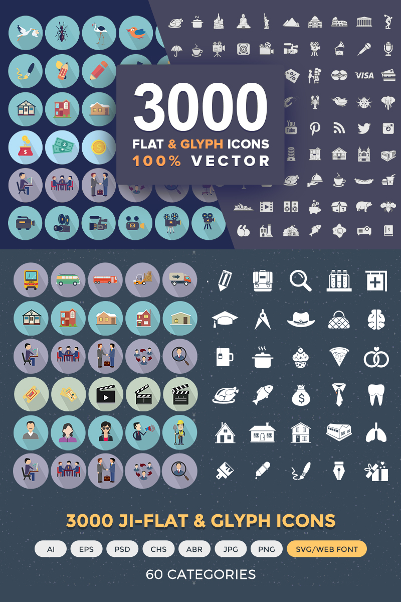 Download Набор иконок "Jumbo Flat-Glyph Icons Pack Set" / Jumbo Flat-Glyph Icons Pack Set - Адаптивный Набор иконок на тему графика vector illustrations pictograms flat ios android webdesigns infographics animals persons socialmedia technology transport emojis sports music web arrows signs symbols