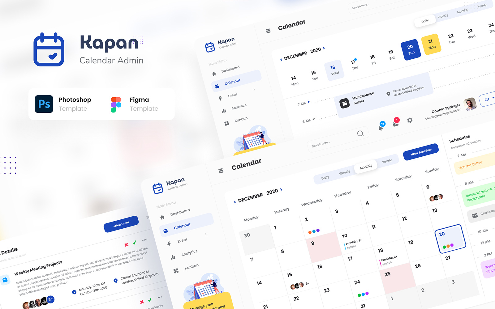 Download UI элементы "Kapan - Calendar Admin Dashboard Figma PSD UI Elements" / Kapan - Calendar Admin Dashboard Figma PSD UI Elements - UI элементы на тему графика analytics,clean,manager,company,corporate,date,elegant,modern,contact,event,statistics,management,user interface,website design,dashboard,admin,website,ui,admin dashboard,psd template