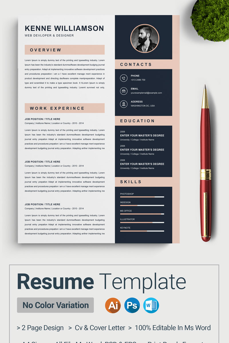 Download Резюме "Kenne Williamson Resume Template" / Kenne Williamson Resume Template - Резюме на тему графика 2 page a4 clean cv design elegant resume female feminine infographic letter minimalist modern portfolio professional indesign minimal pages