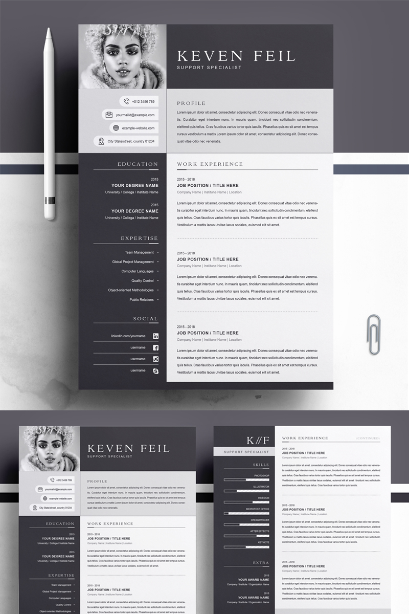 Download Резюме "Keven Resume Template" / Keven Resume Template - Резюме на тему графика 1 page resume 2 3 clean cover letter curriculum vitae cv template illustrator eps mac pages microsoft word minimal resume