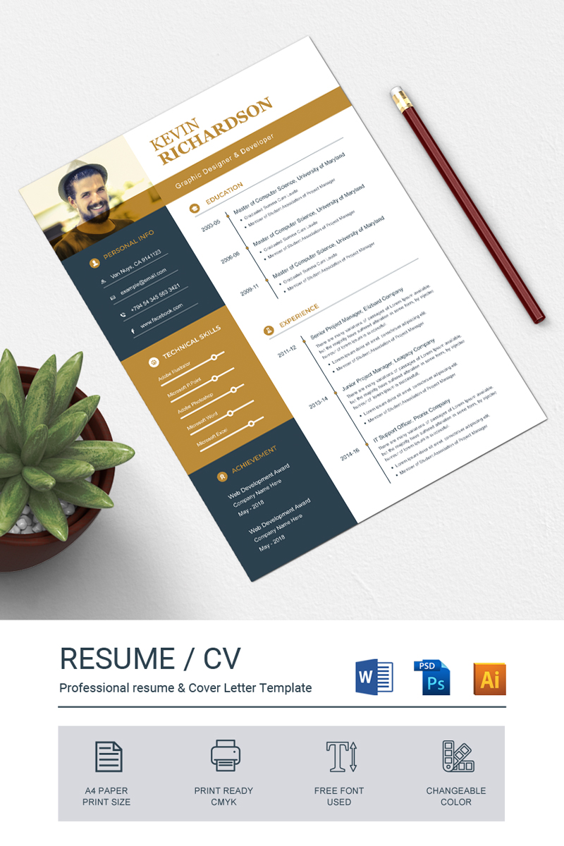 Download Резюме "Kevin Richardson Resume Template" / Kevin Richardson Resume Template - Адаптивный Резюме на тему графика resume template cv clean modern a4 doc elegant indesign infographic professional creative design minimal pages portfolio word us letter