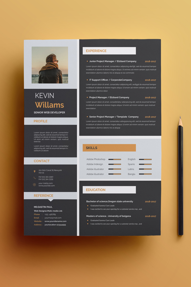 Download Резюме "Kevin Willams - Resume Template" / Kevin Willams - Resume Template - Резюме на тему графика -pieceresume a4 black bright career clean cleancv cleanresume coverletter creative creativeresume curriculumvitae cv cvdesign cvresume template designer docx editable elegant