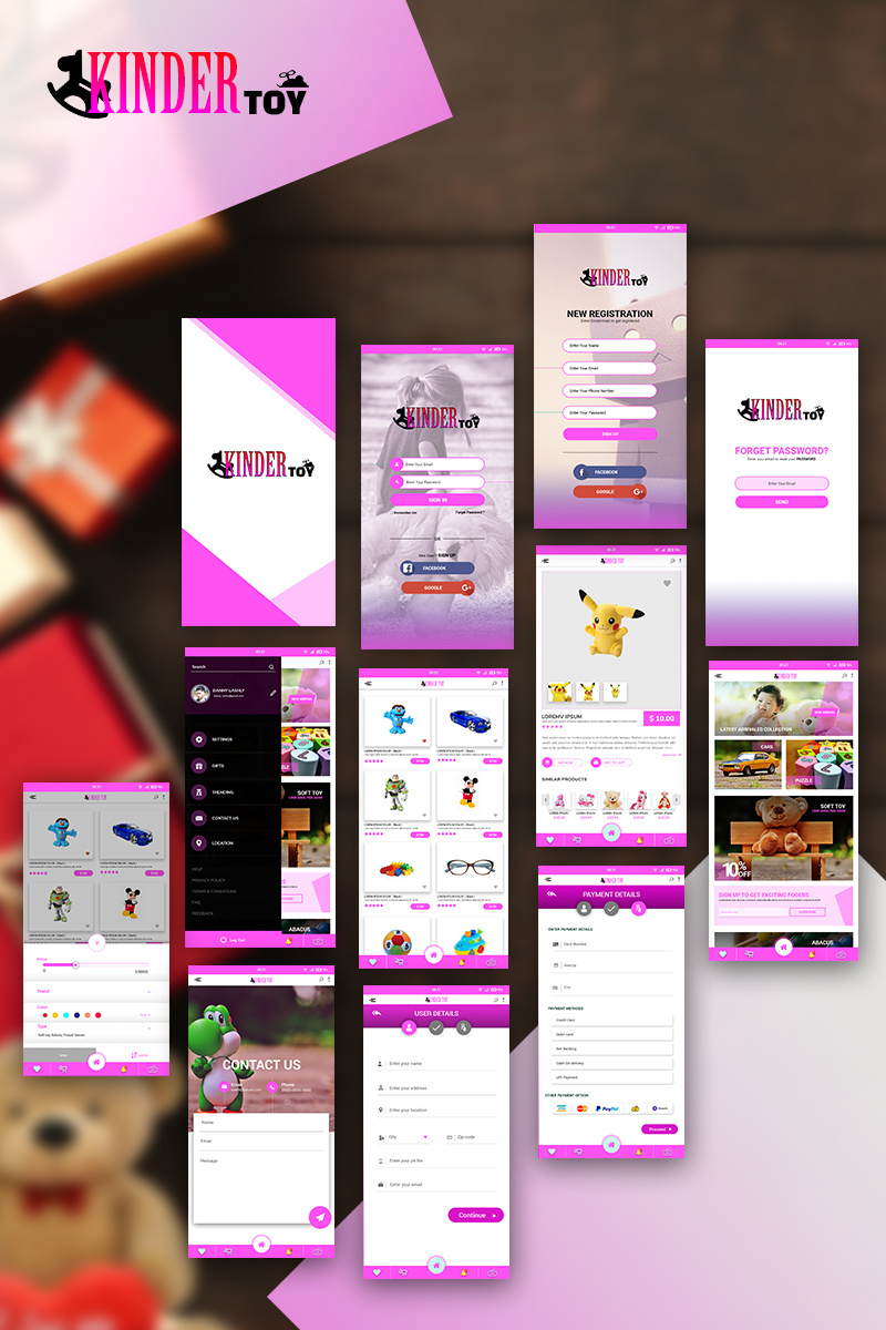 Download UI элементы "KinderToy - Toy Store App PSD UI Elements" / KinderToy - Toy Store App PSD UI Elements - UI элементы на тему графика psd template theme toy store ui app