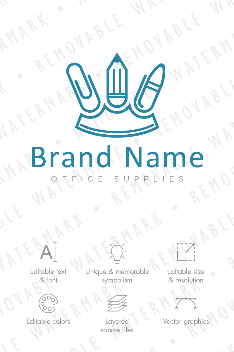 Download Шаблон логотипа "King of Office Logo Template" / King of Office Logo Template - Шаблон логотипа на тему графика creative simple office school ink pencil pen write jewelry crown kingdom king clip supplies paper logo design template publishing tool