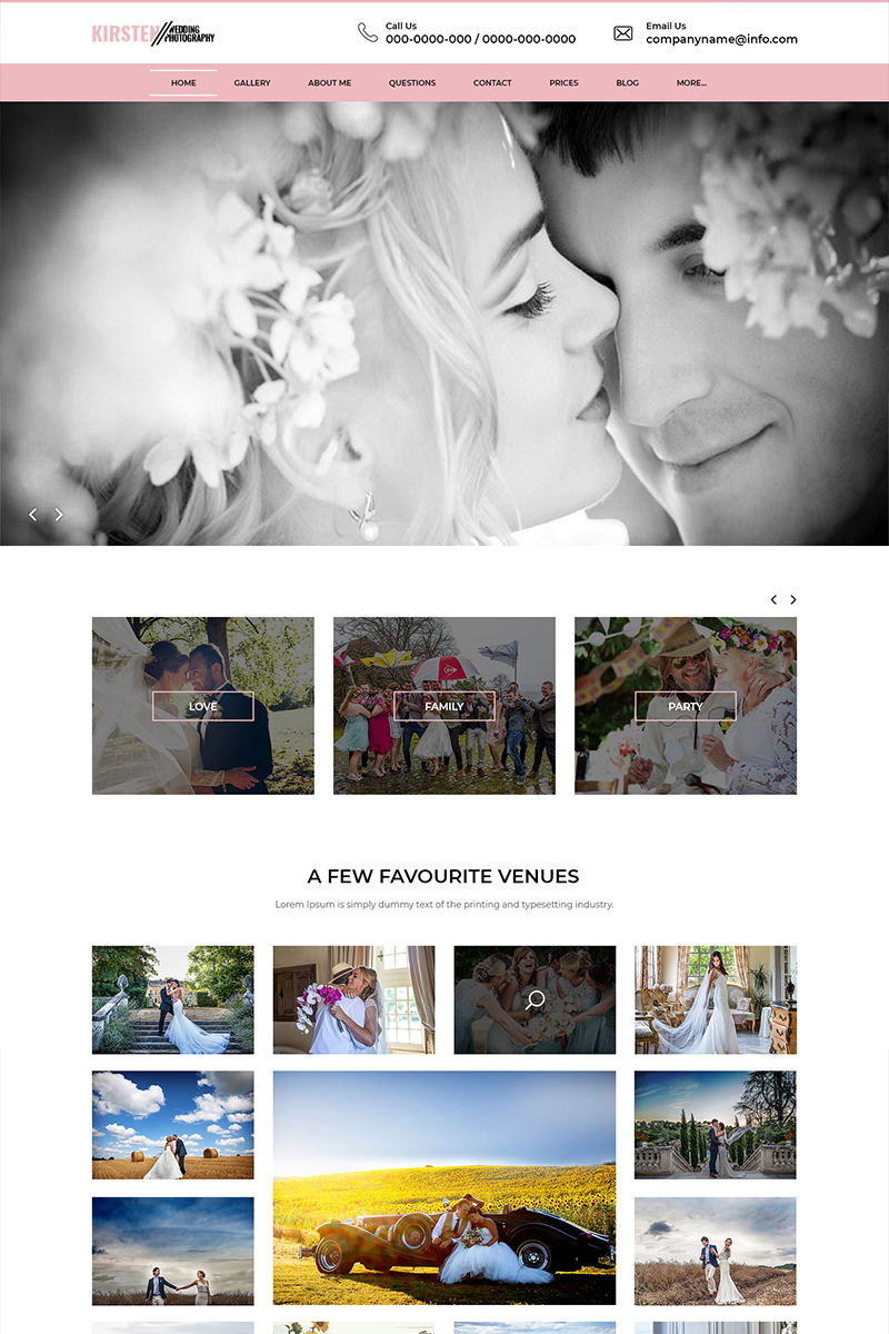 Download PSD шаблон "Kirsten - Wedding Photography PSD Template" / Kirsten - Wedding Photography PSD Template - PSD шаблон на тему фотограф wedding photography psd photoshop theme template