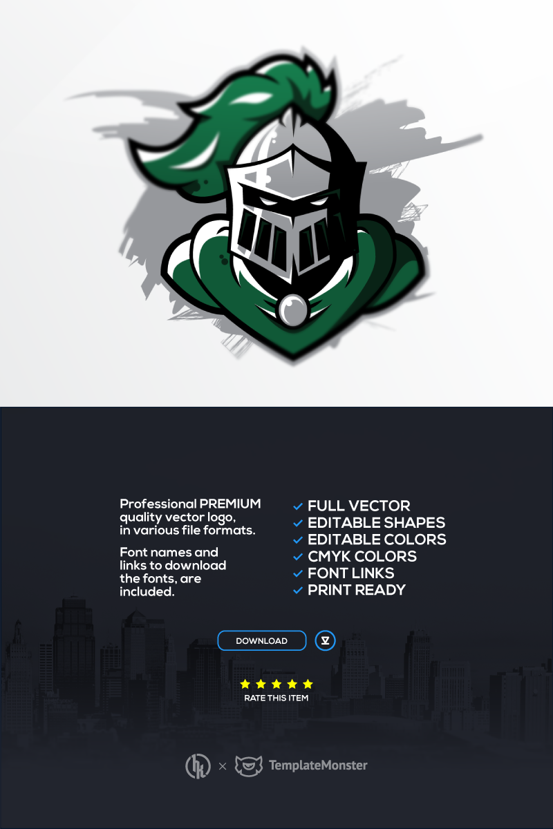 Download Шаблон логотипа "Knights Logo Template" / Knights Logo Template - Шаблон логотипа на тему графика knight,sports,sport,editable,vector,logo,esport,gothic,hero,warrior,helmet,spartan,support,font