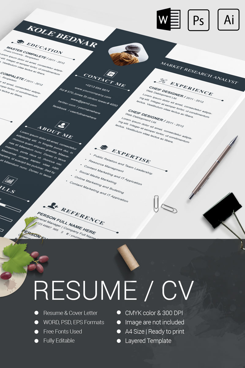 Download Резюме "Kole Bendar Resume Template" / Kole Bendar Resume Template - Резюме на тему графика 2 page a4 clean cv design elegant resume female feminine infographic letter minimalist modern portfolio professional indesign minimal pages