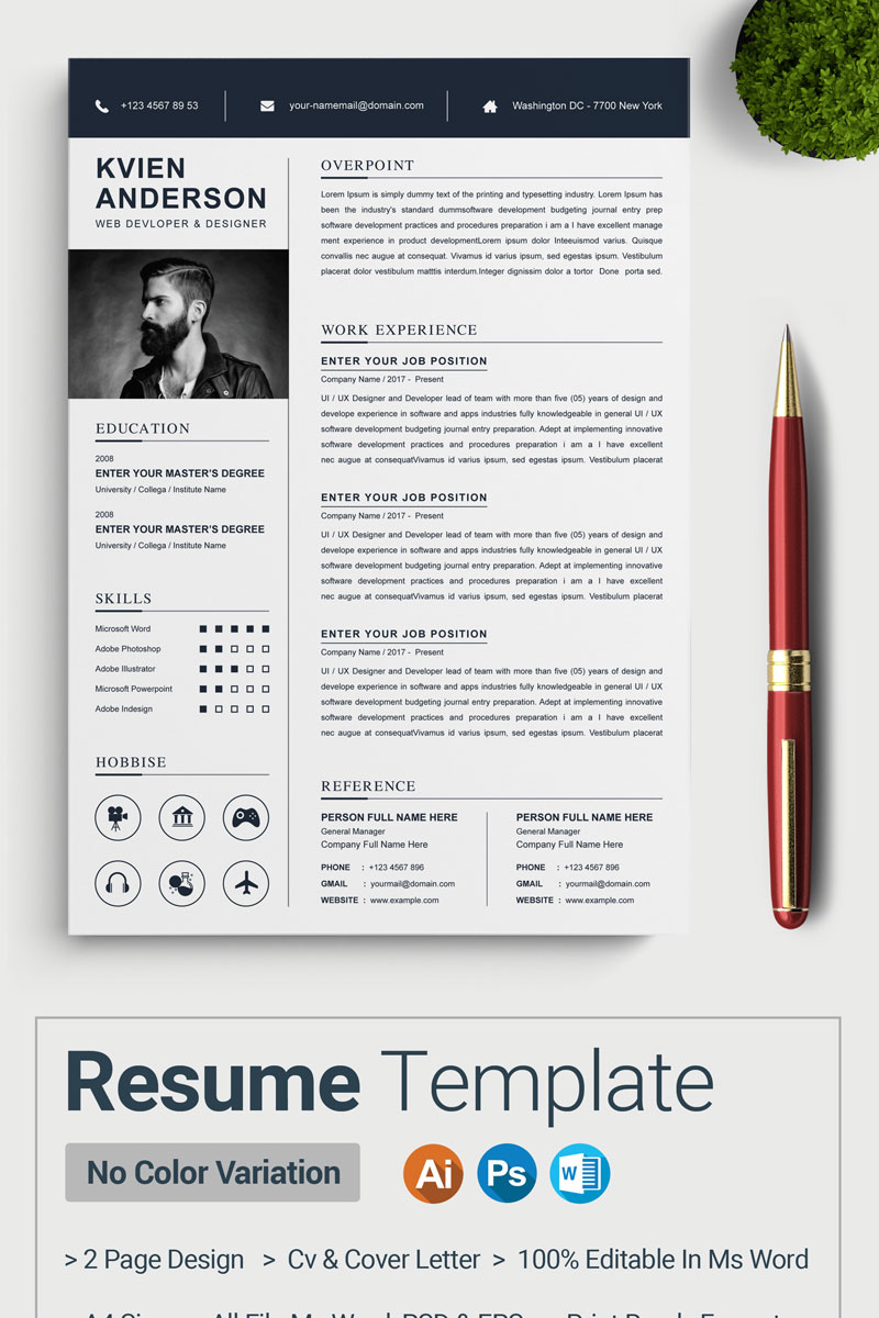 Download Резюме "Kvien Resume Template" / Kvien Resume Template - Резюме на тему графика 2 page a4 clean cv design elegant resume female feminine infographic letter minimalist modern portfolio professional indesign minimal pages