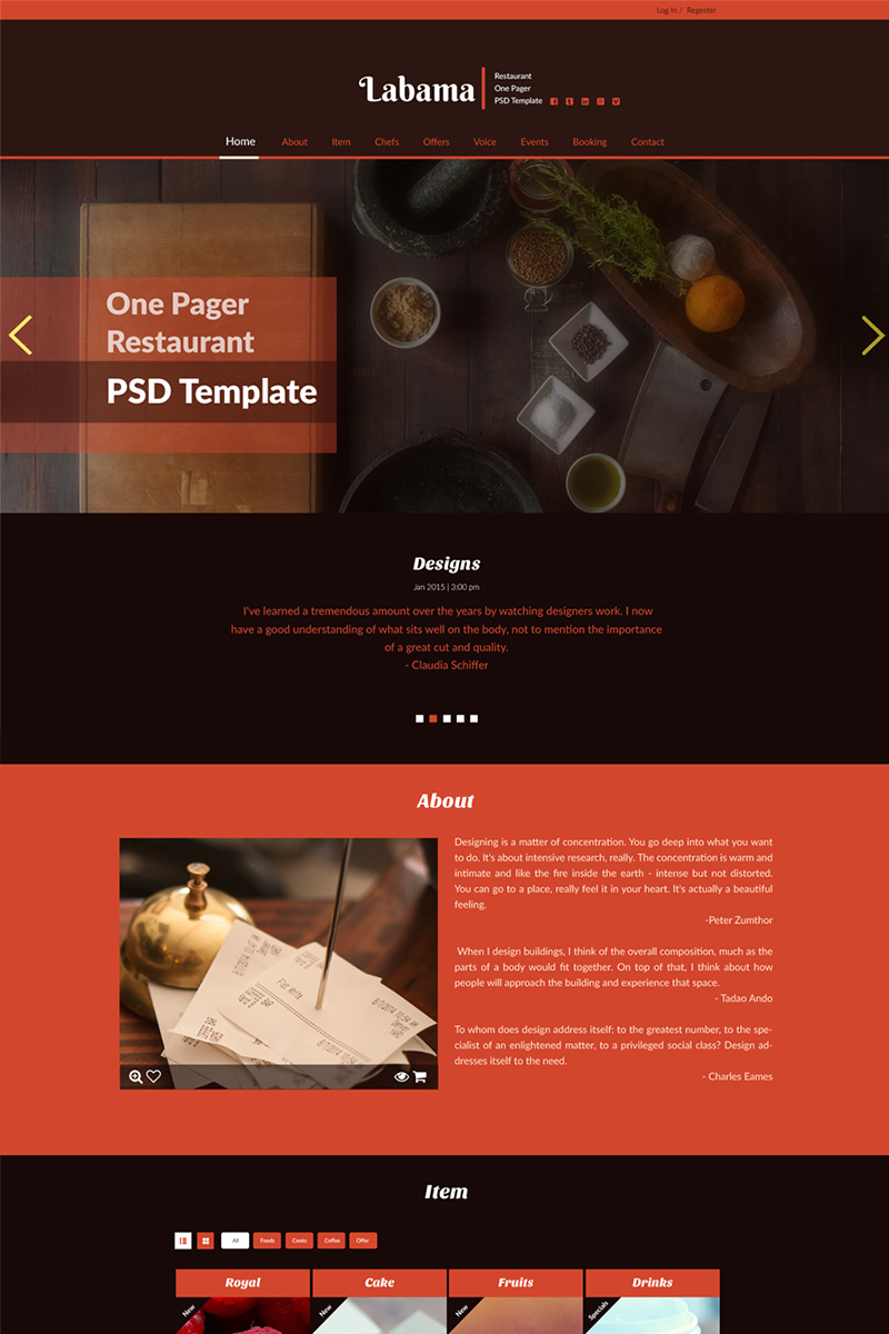 Download PSD шаблон "Labama PSD Template" / Labama PSD Template - PSD шаблон на тему кафе bakery cafe chef cooking dishes fastfood food fruit meal pizza restaurant psd template