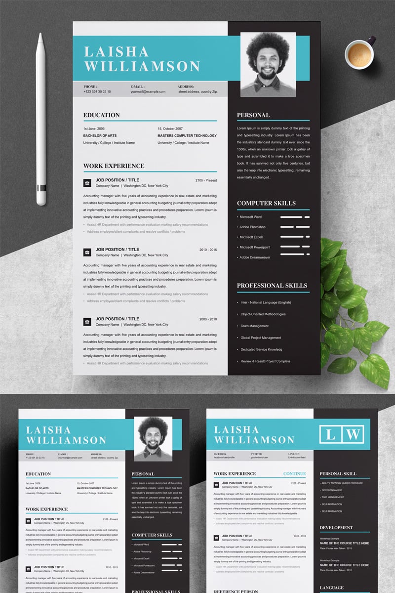 Download Резюме "Laisha Resume Template" / Laisha Resume Template - Резюме на тему графика 1 page resume 2 clean cv cover letter design template illustrator eps mac pages microsoft word modern photoshop psd professional