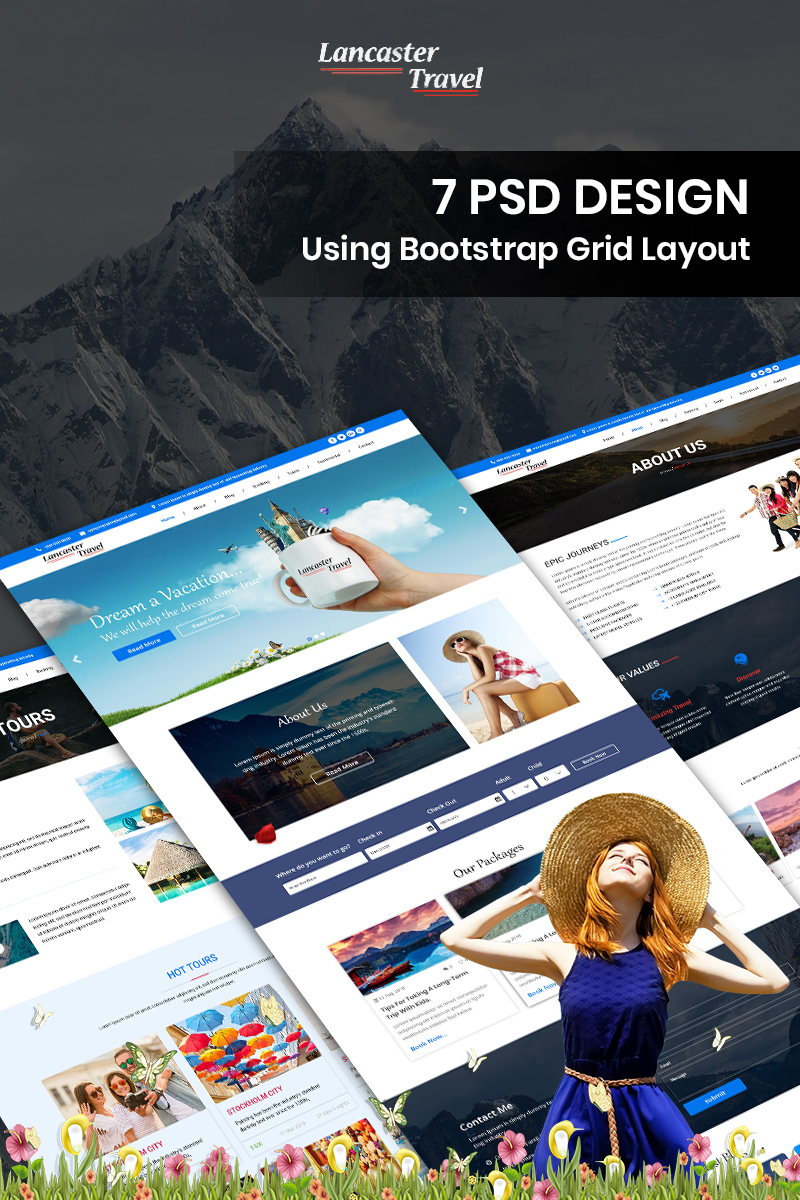 Download PSD шаблон "Lancaster Travel - Travel Services PSD Template" / Lancaster Travel - Travel Services PSD Template - PSD шаблон на тему путешествия travel tourism psd photoshop theme template