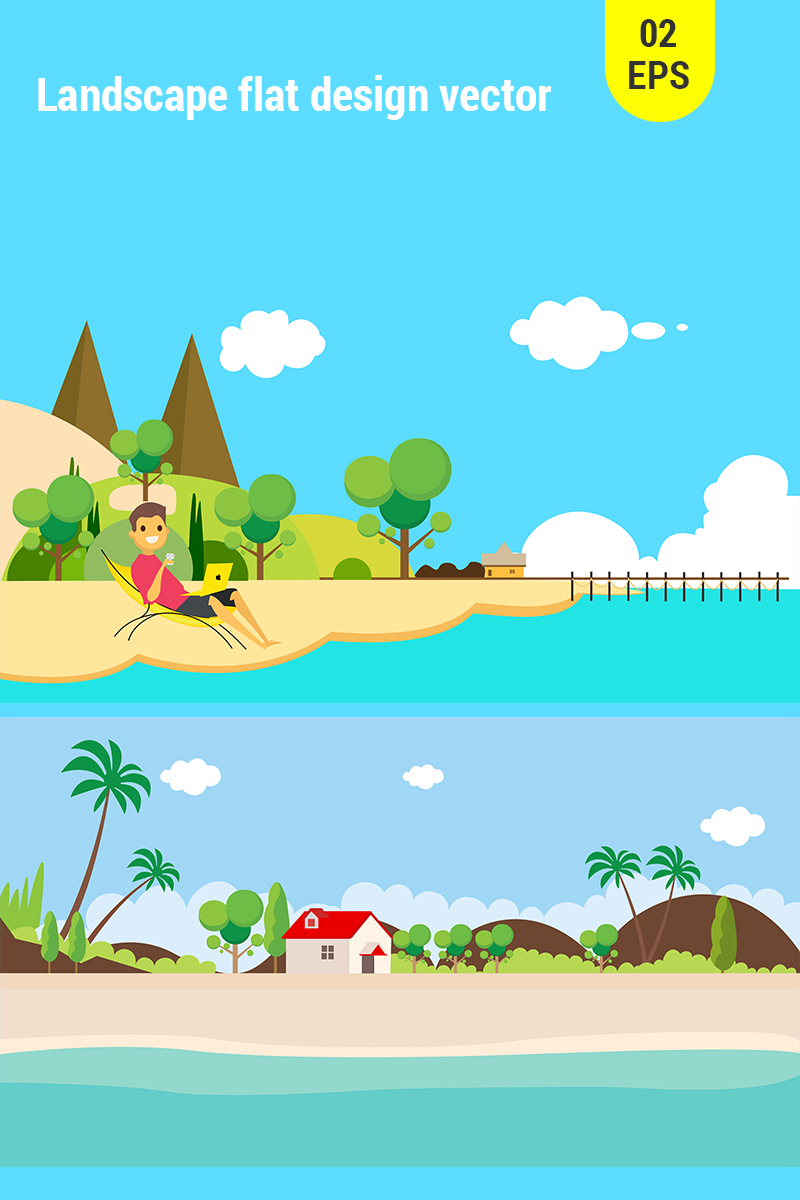 Download Иллюстрация "Landscape Flat Design Vector - Illustration" / Landscape Flat Design Vector - Illustration - Иллюстрация на тему графика green energy solar pack flat design illustration graphic beautiful power natural blue forest beach house city tree
