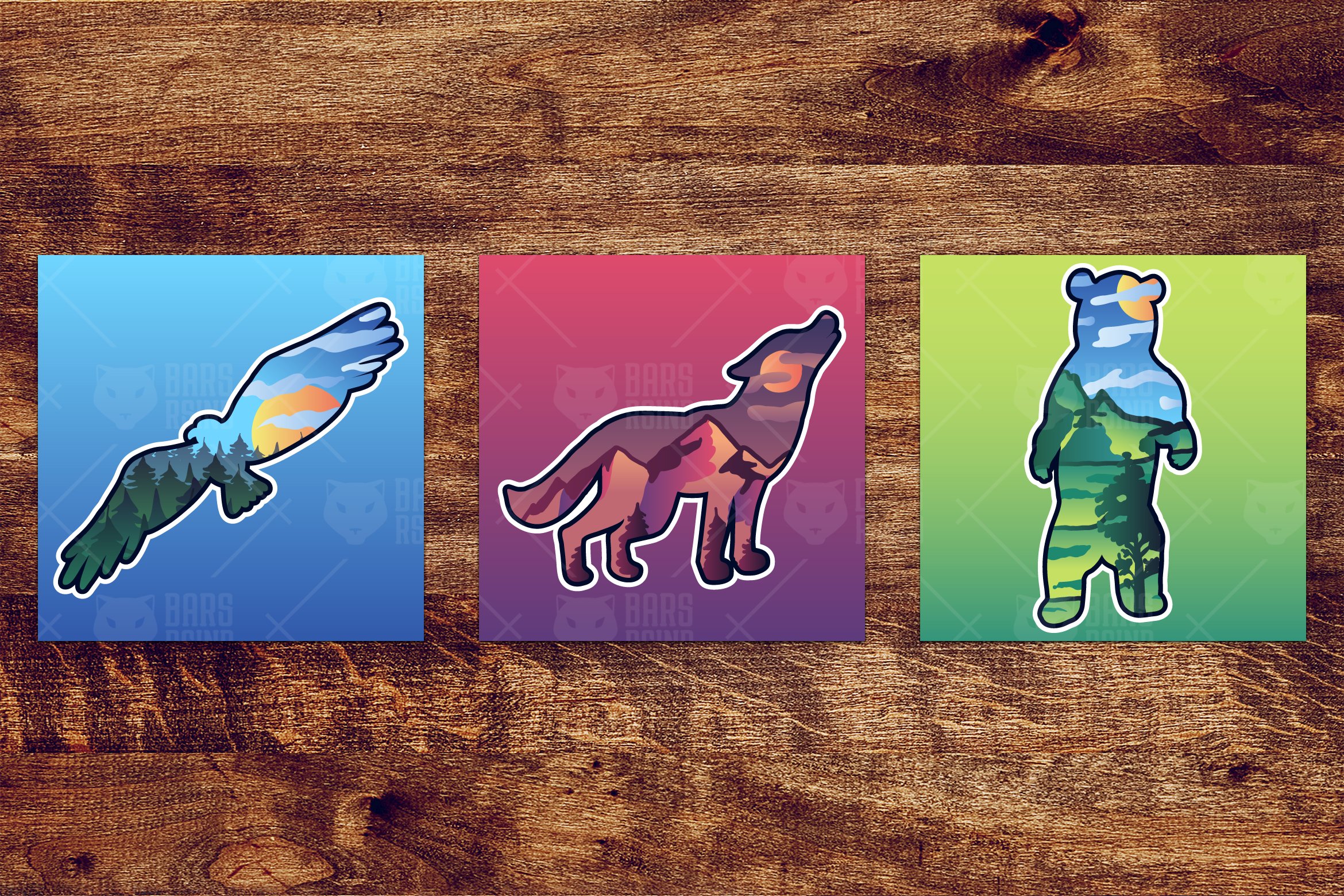 Download Vector "Landscapes In Wild Animals - Vector Image" / Landscapes In Wild Animals - Vector Image - Vector на тему графика card,illustration,design,decorative,nature,postcard,summer,vector,color,clipart,sun,moon,sunset,sunrise,spring,pack,flat,tree,colorful,environment,forest,cloud,background,white,graphic,campin