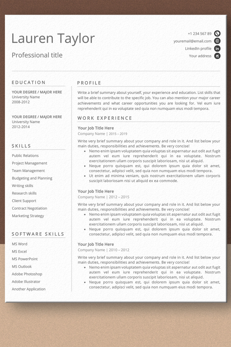 Download Резюме "Lauren Taylor Ms Word Resume Template" / Lauren Taylor Ms Word Resume Template - Резюме на тему графика word,simple,clean,classic,cv,references,project,manager,director,executive,professional,mininmalist,minimal,pr,teacher,lawyer,cover letter,resume template,cv template