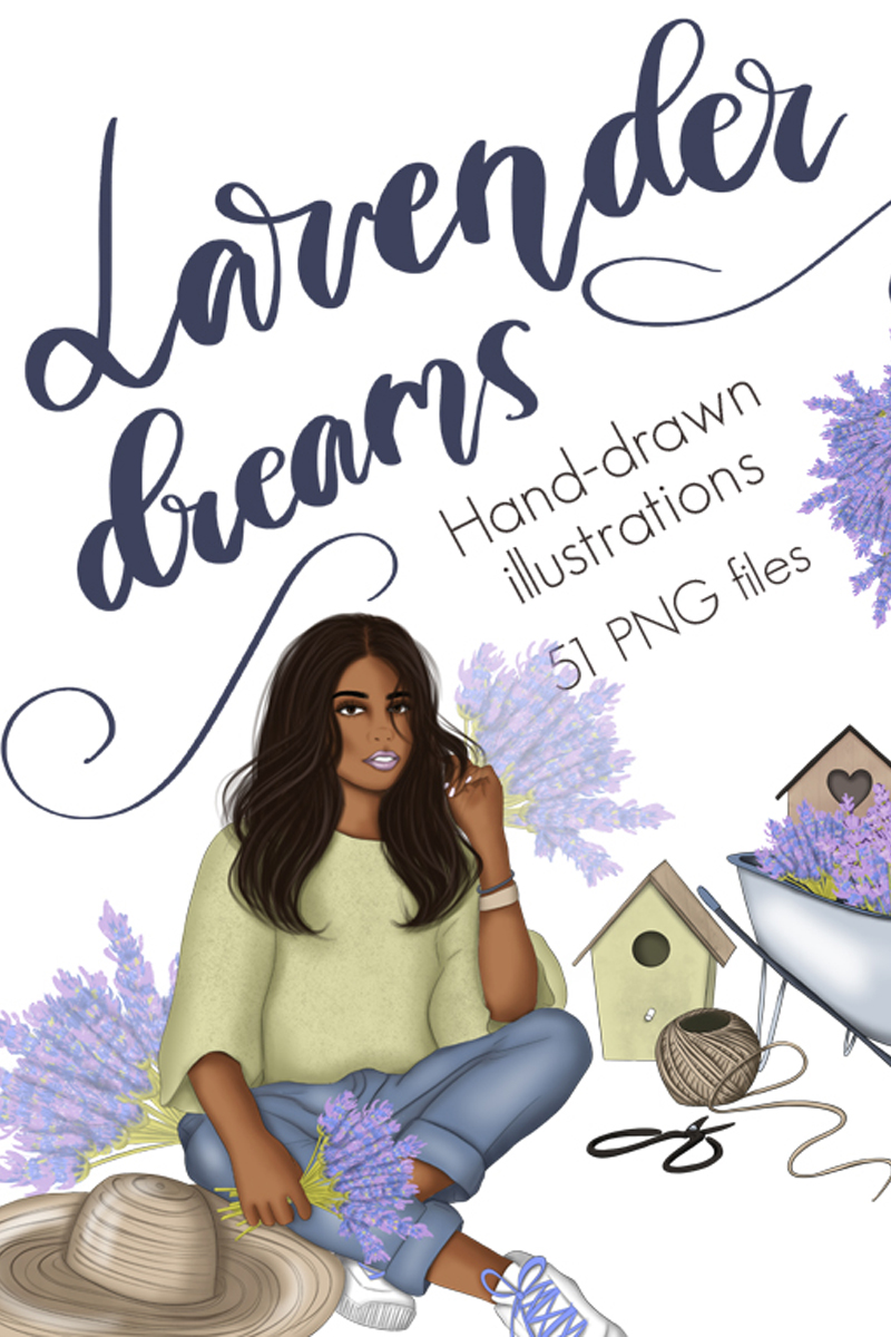 Download Иллюстрация "Lavender Dreams Clipart - Illustration" / Lavender Dreams Clipart - Illustration - Иллюстрация на тему графика planner stickers african american fashion illustration watercolor clipart girl afro babe lavender spring florals flowers dreams handdrawn graphics sublimation design